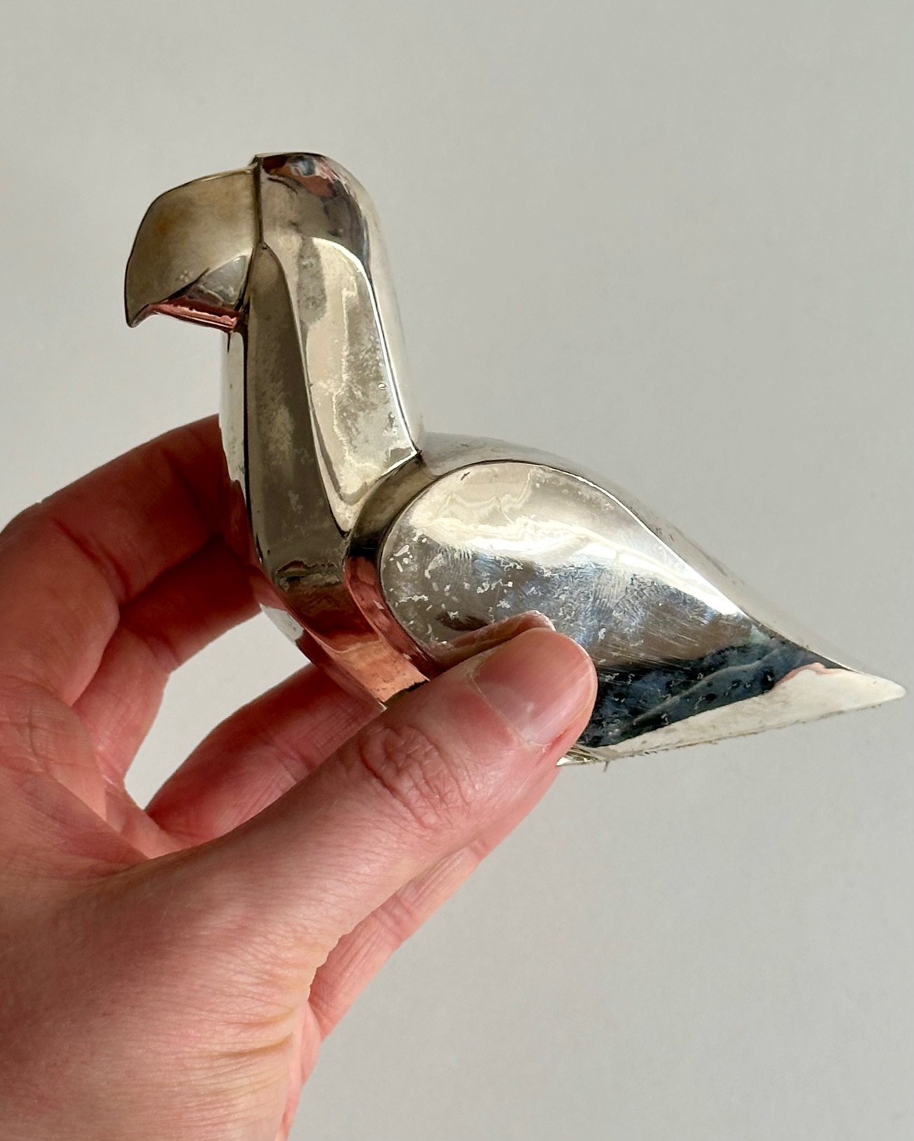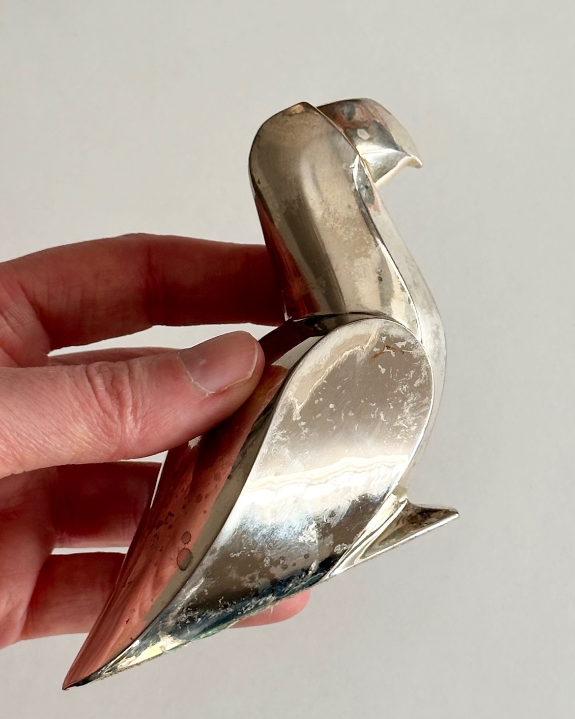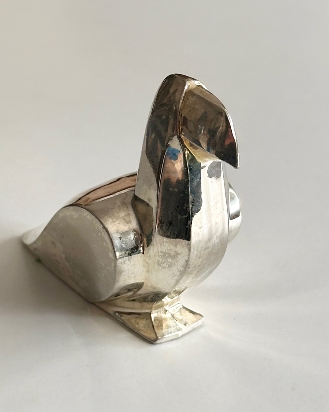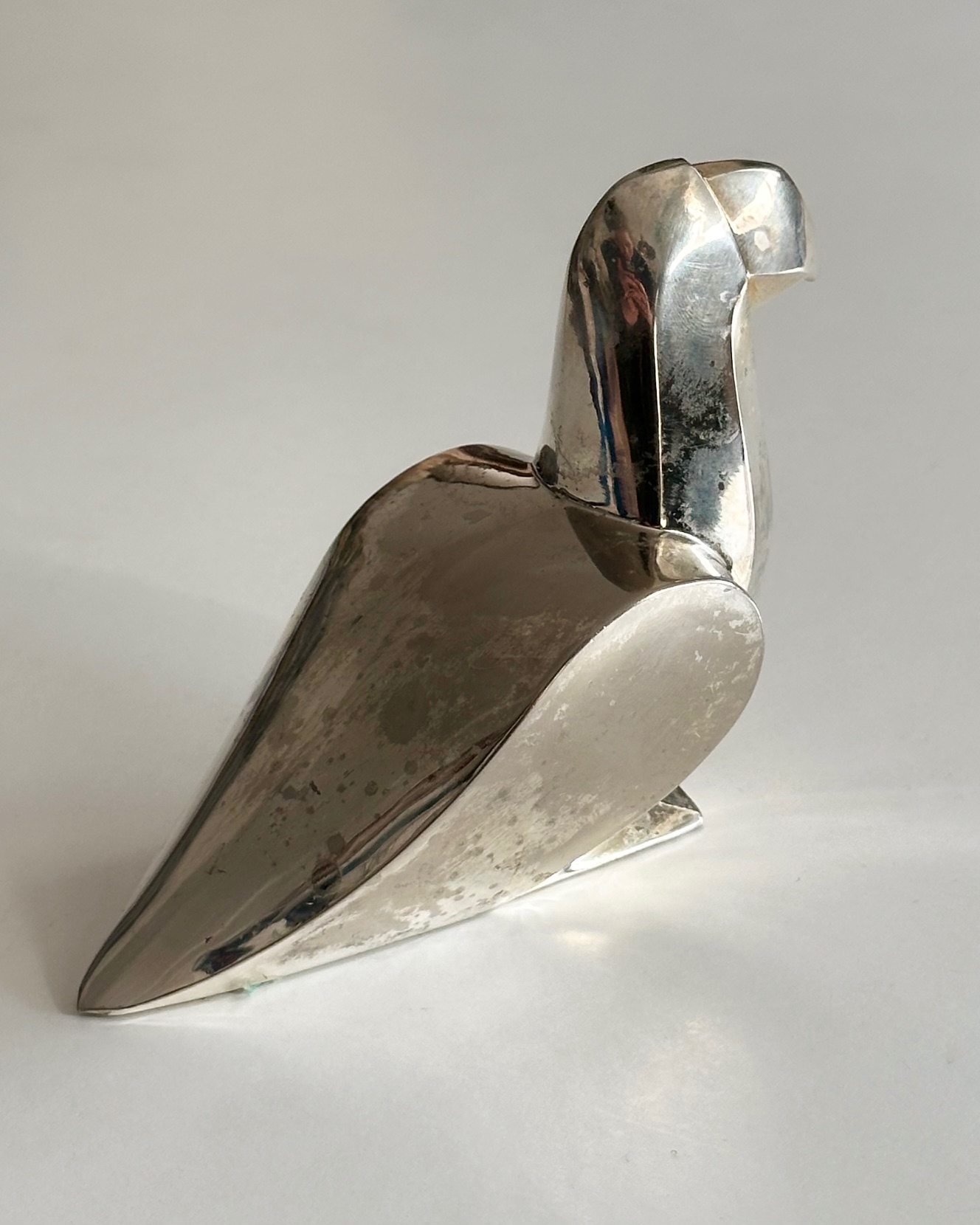 Fuglefigur fra Gense, pletsølv med patina
