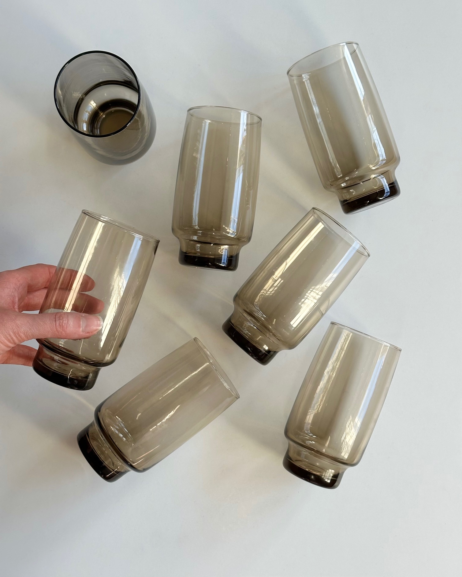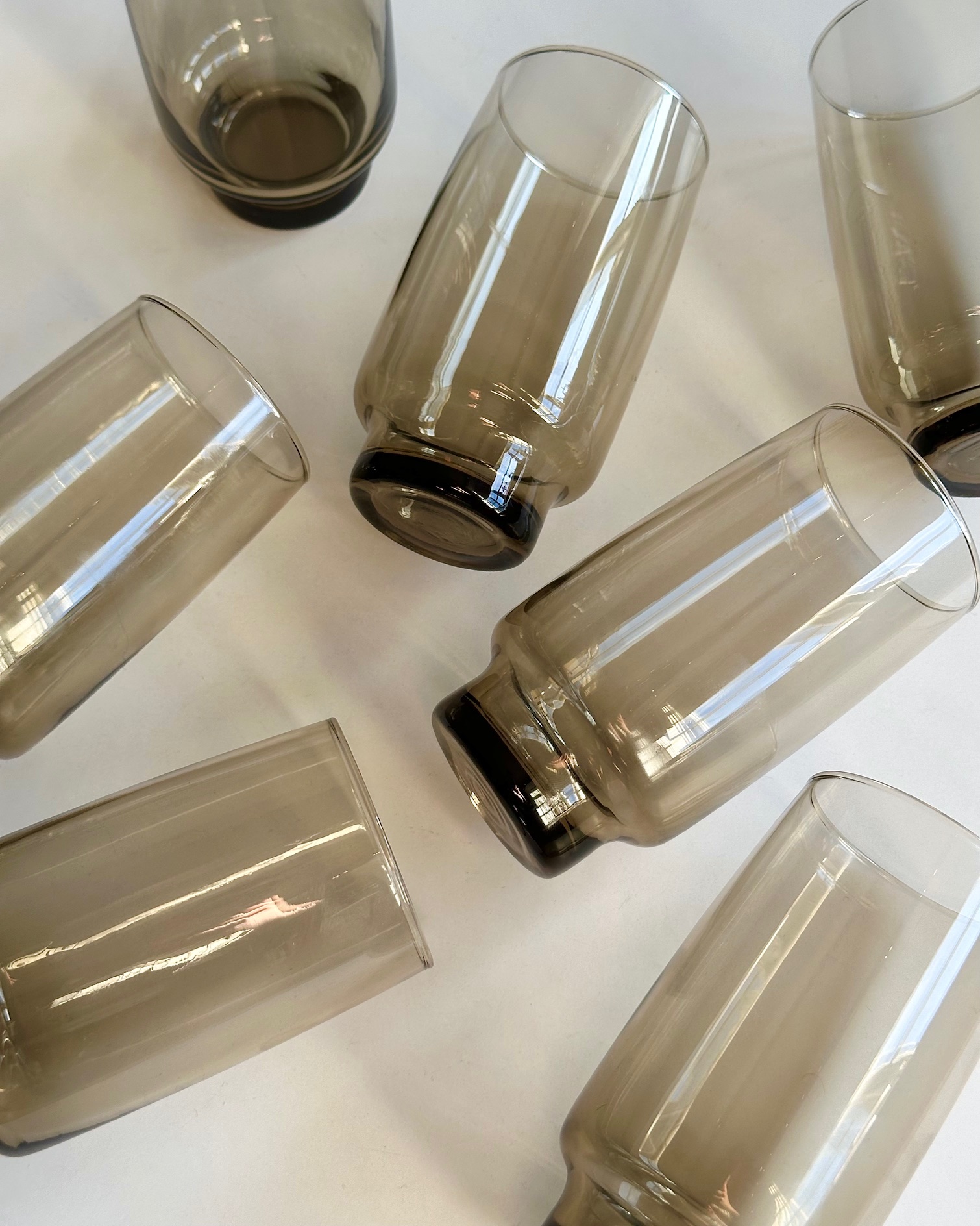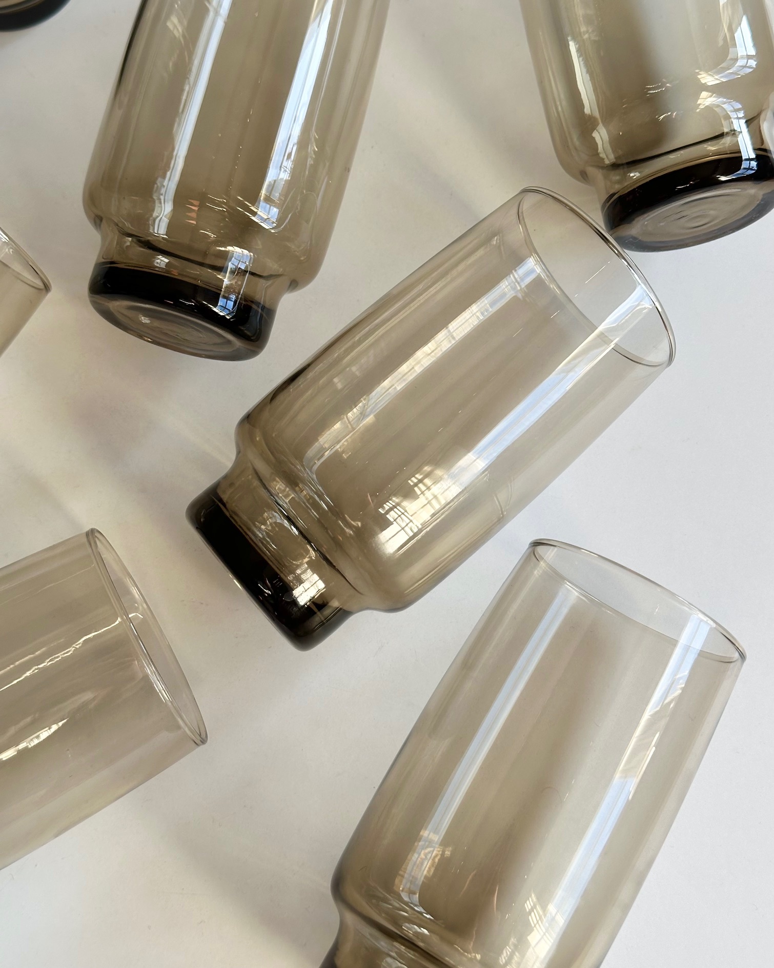 7 høje Luminarc drikkeglas af røgfarvet glas