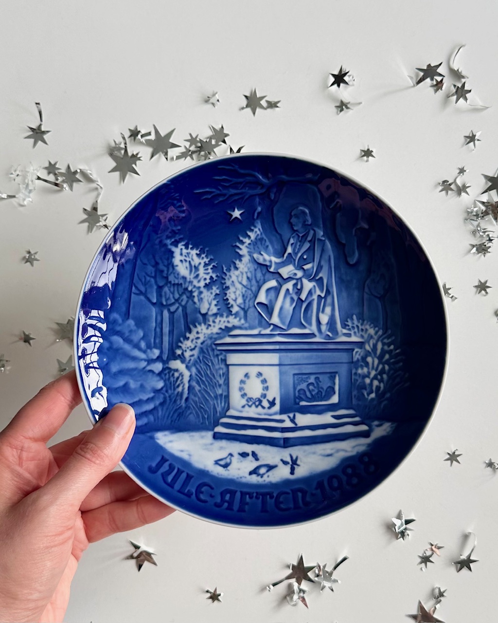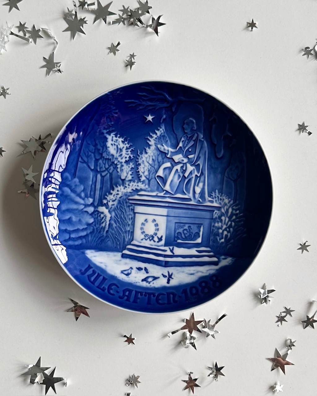 Juleplatte fra Bing og Grøndahl, Hans Christian Andersen i Kongens Have, designet af Edvard Jensen.