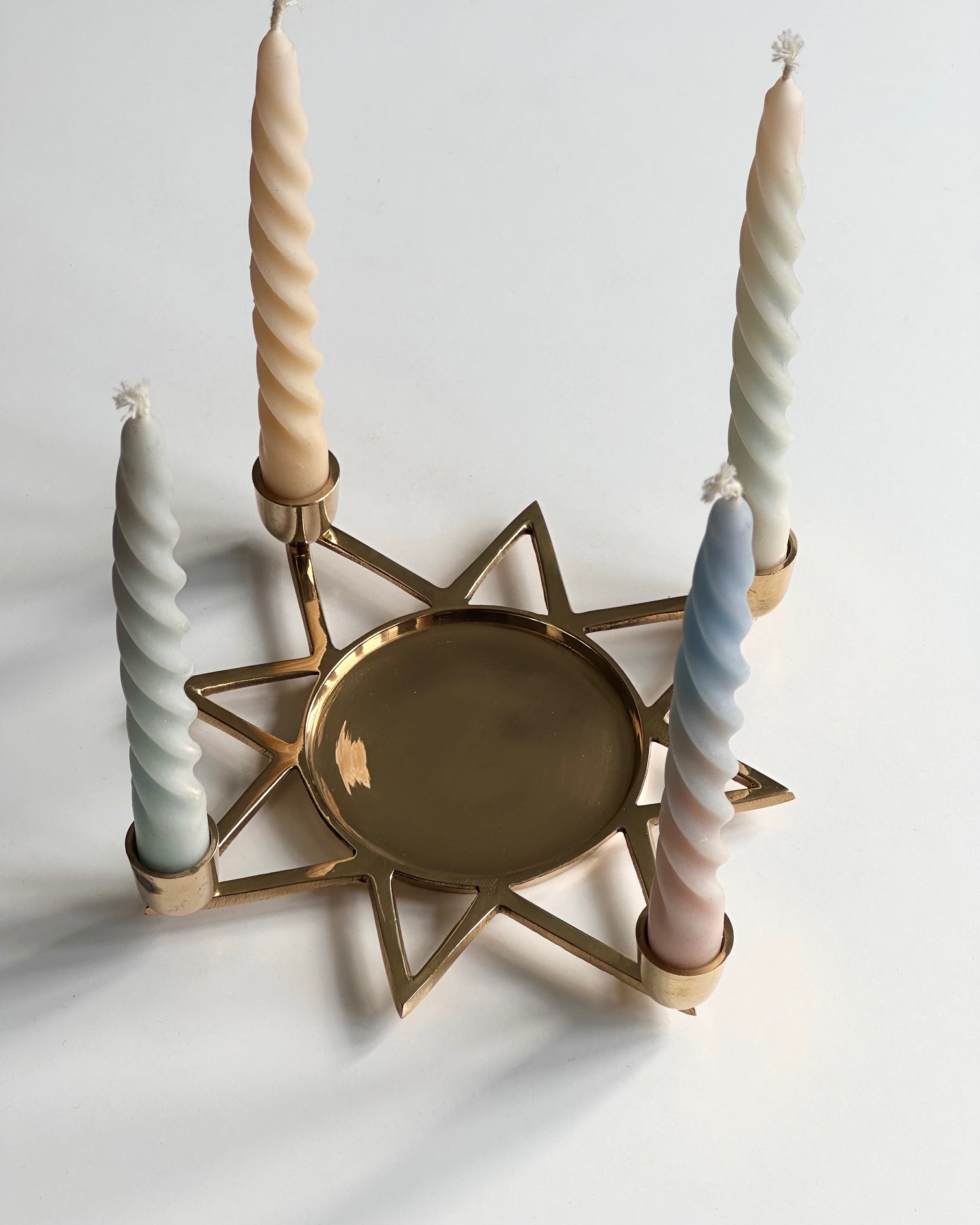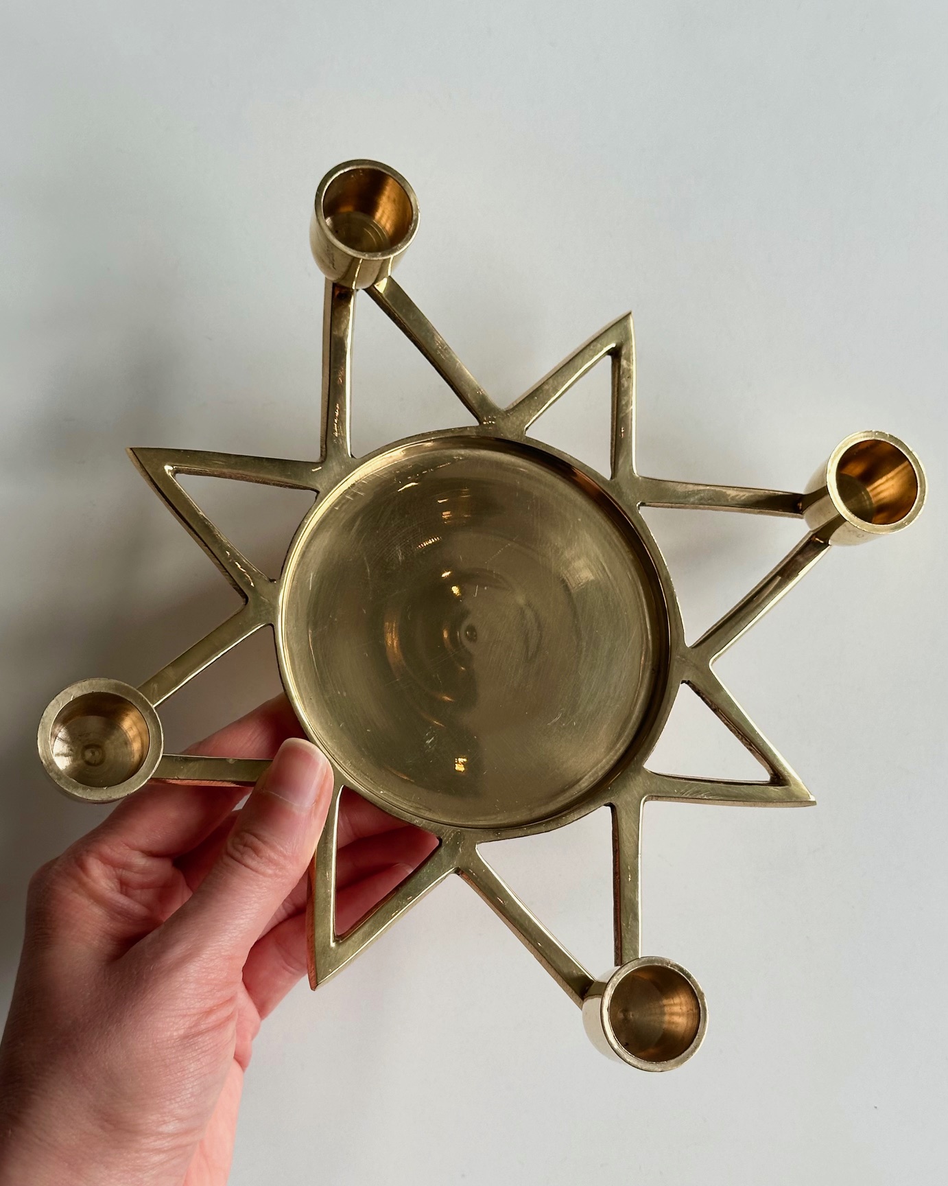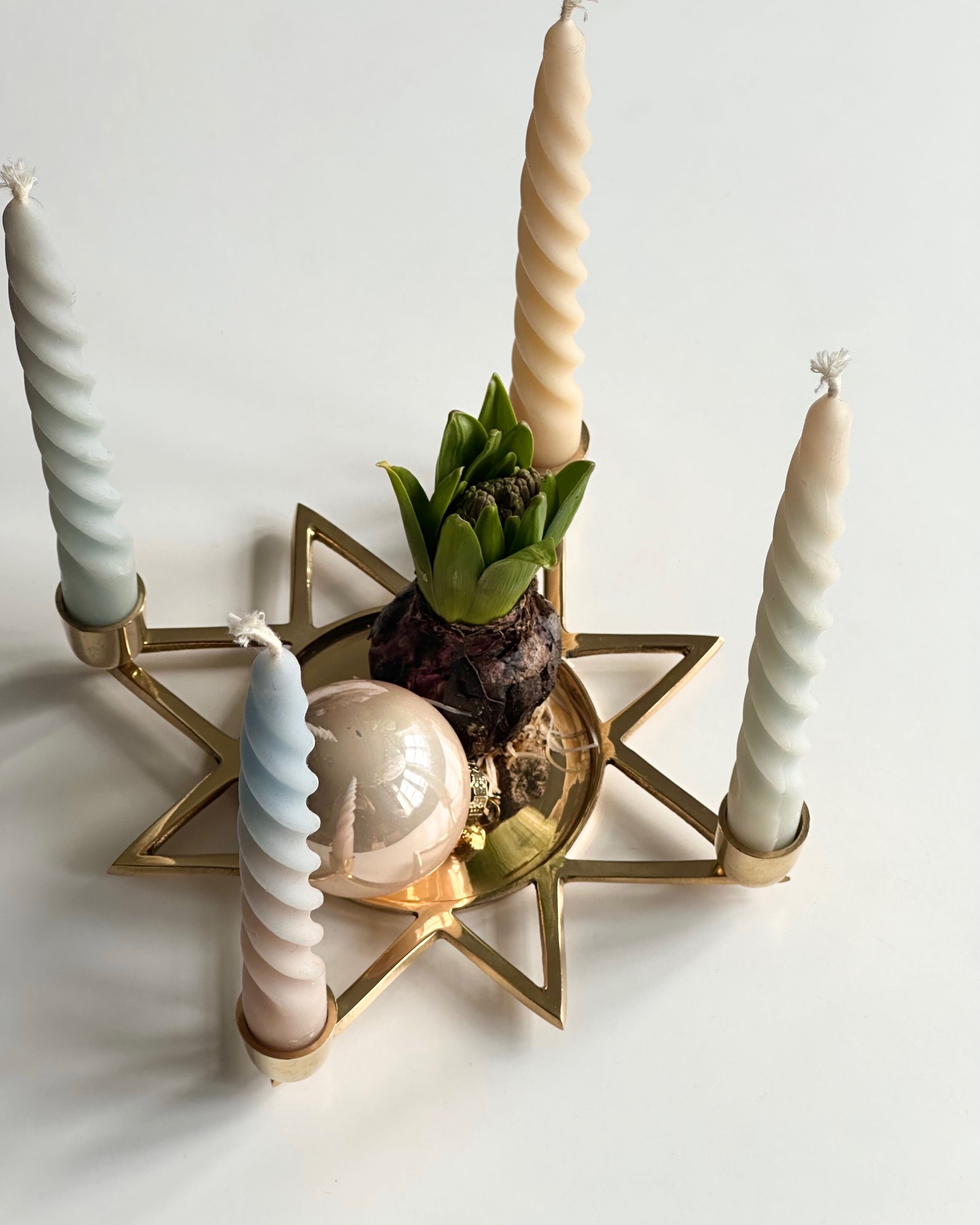 Skøn messingstage til advent, med plade i midten til fri fantasi af dekoration