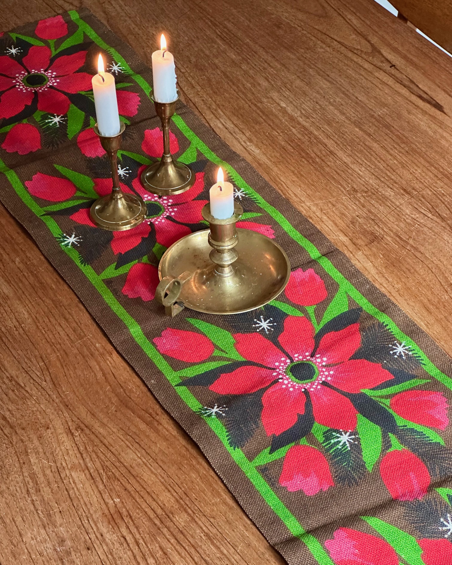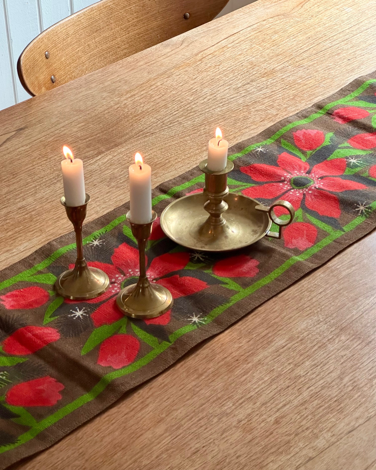 Hessian bordløber m julestjerne, 117 x 26,5 cm