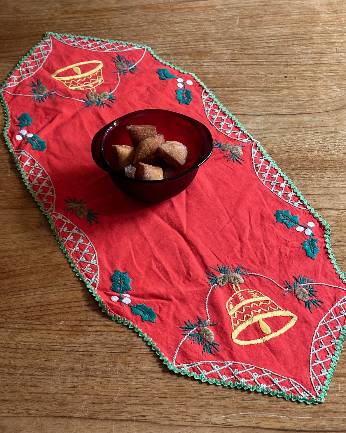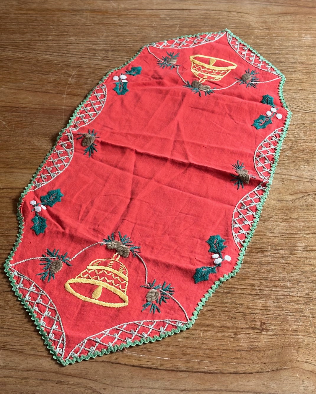 Antik bordløber, håndbroderet, 73 x 31 cm