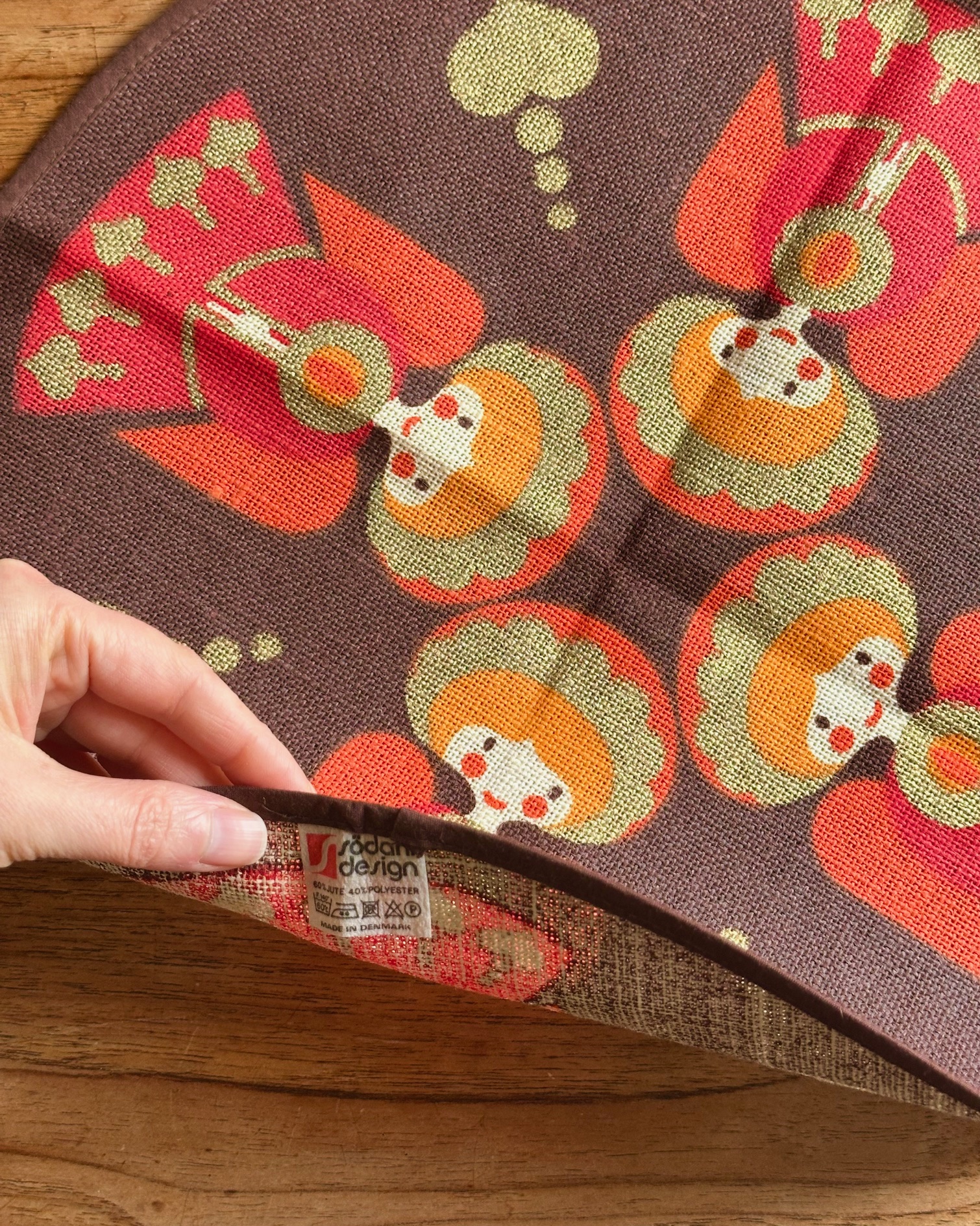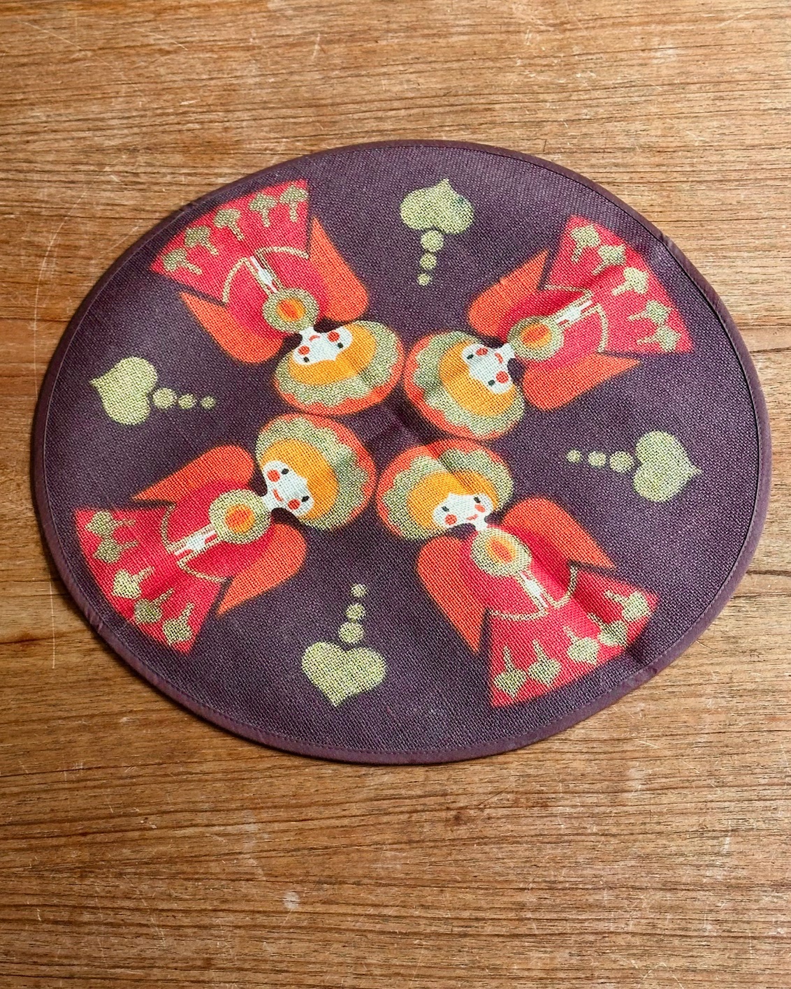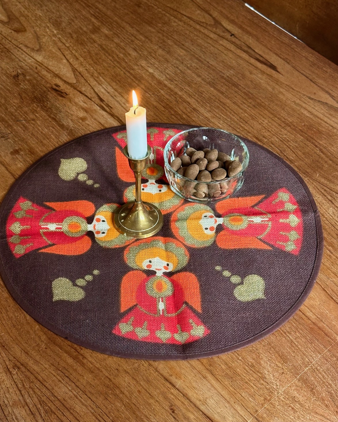 Rund Sødahl lysedug af hessian, med engle