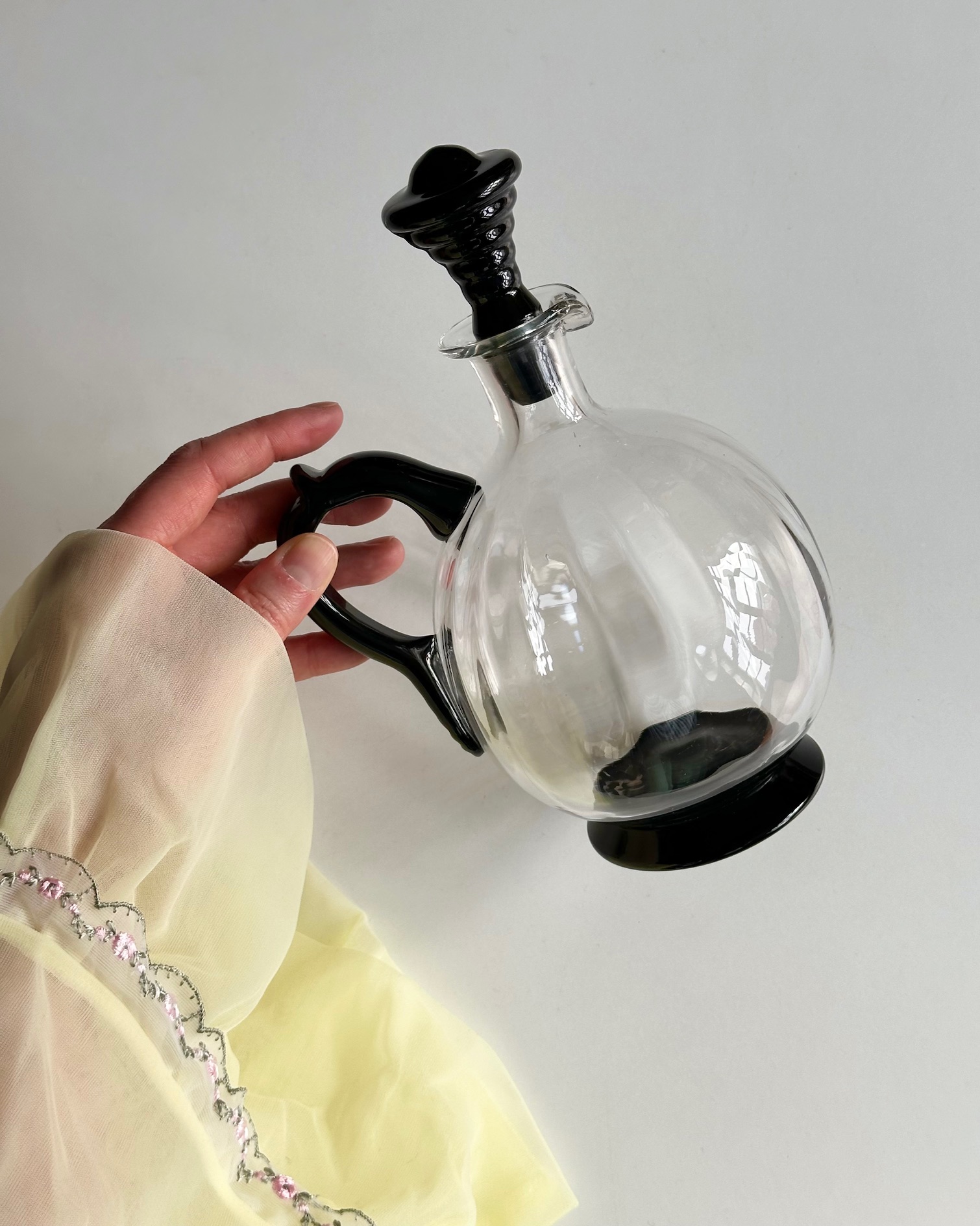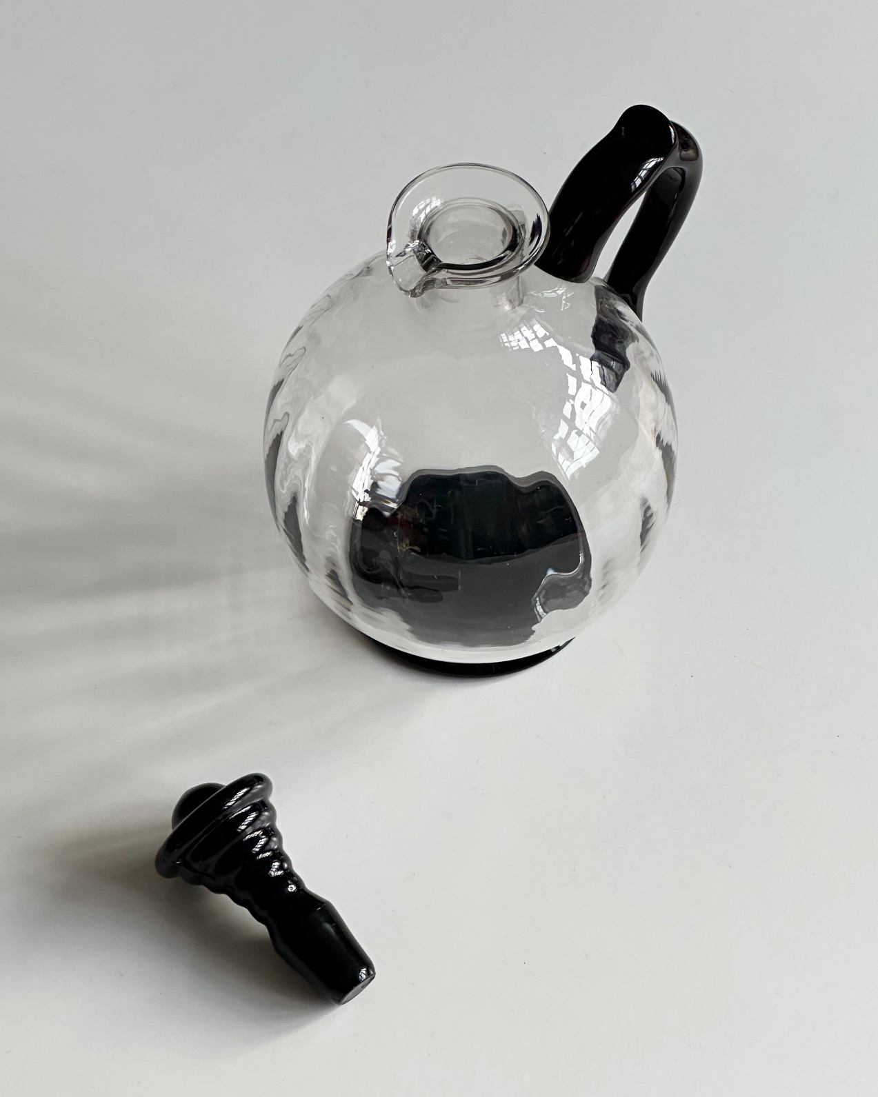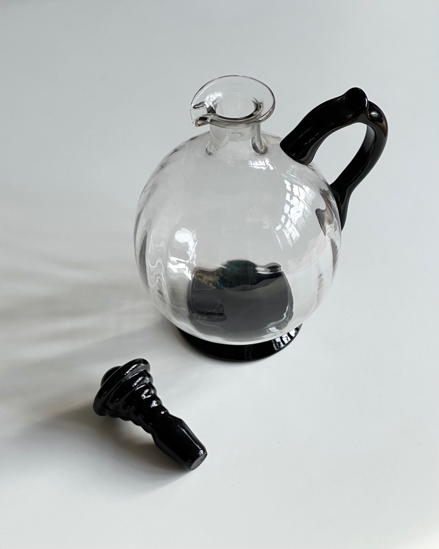 Vintage karaffel med sort hank, base og prop