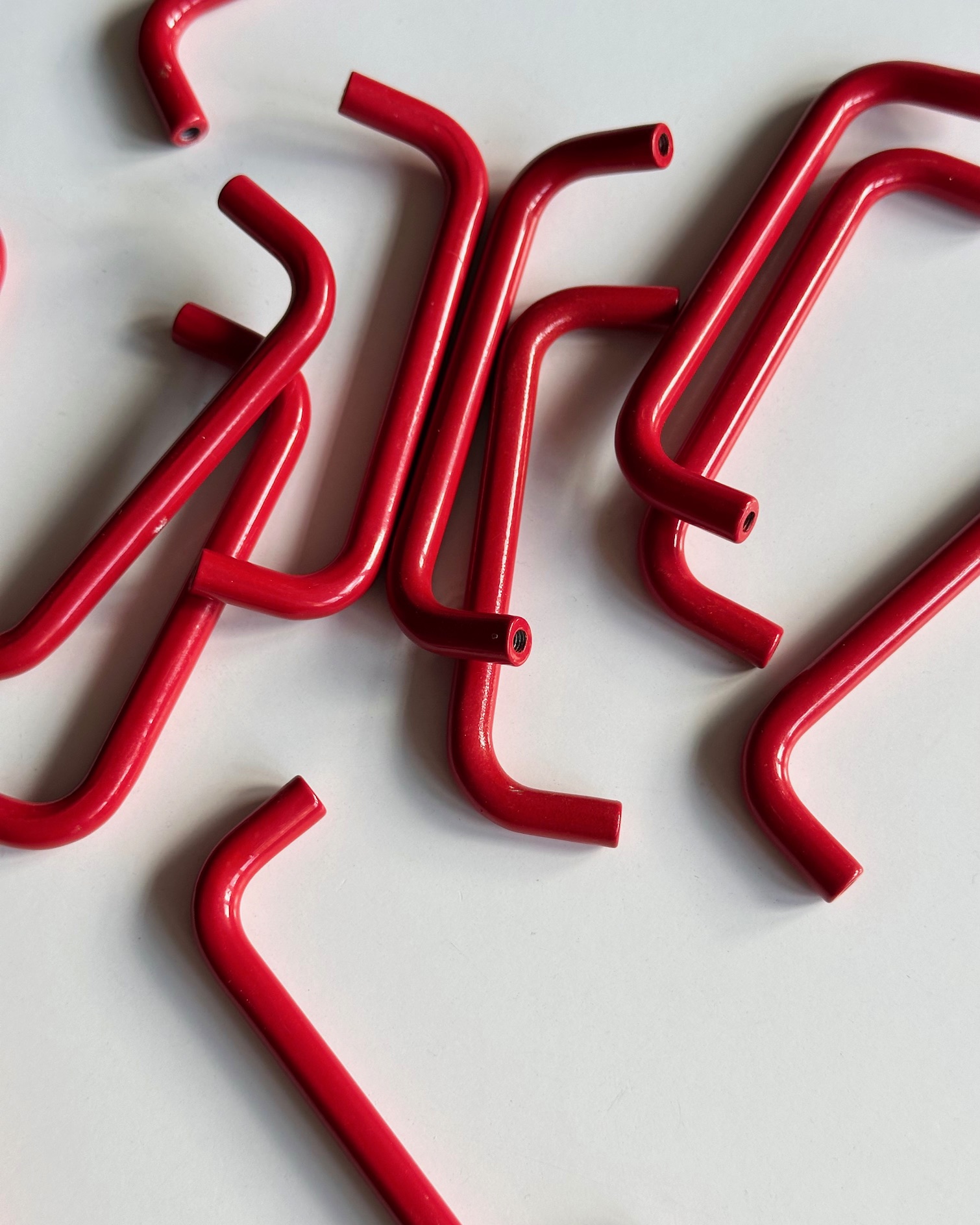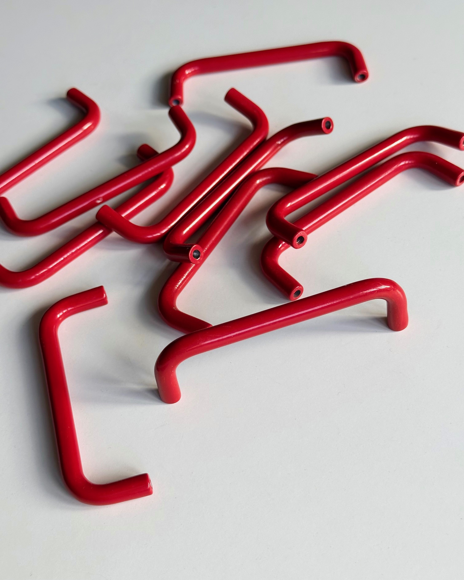 12 postkasserøde, pulverlakerede greb til skabslåger, køkkenlåger, kommode mv