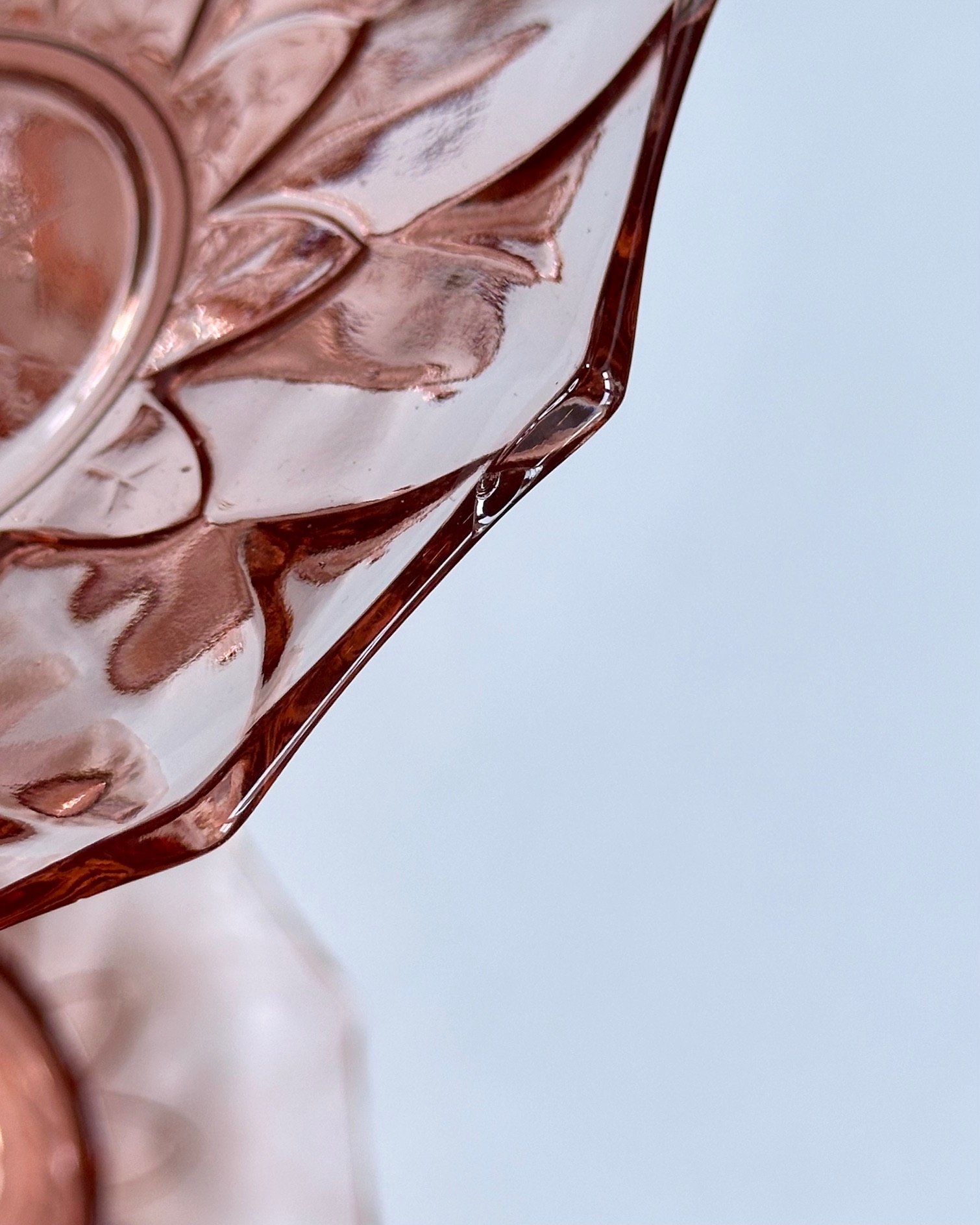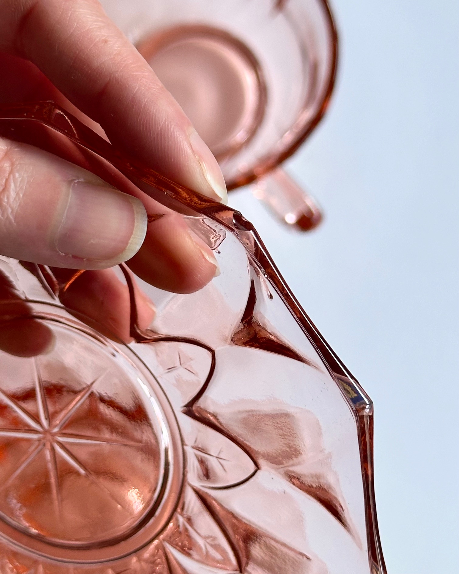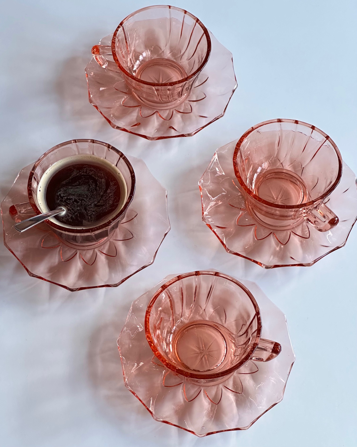 Kopper m underkopper, rosa glas, 4 sæt samlet