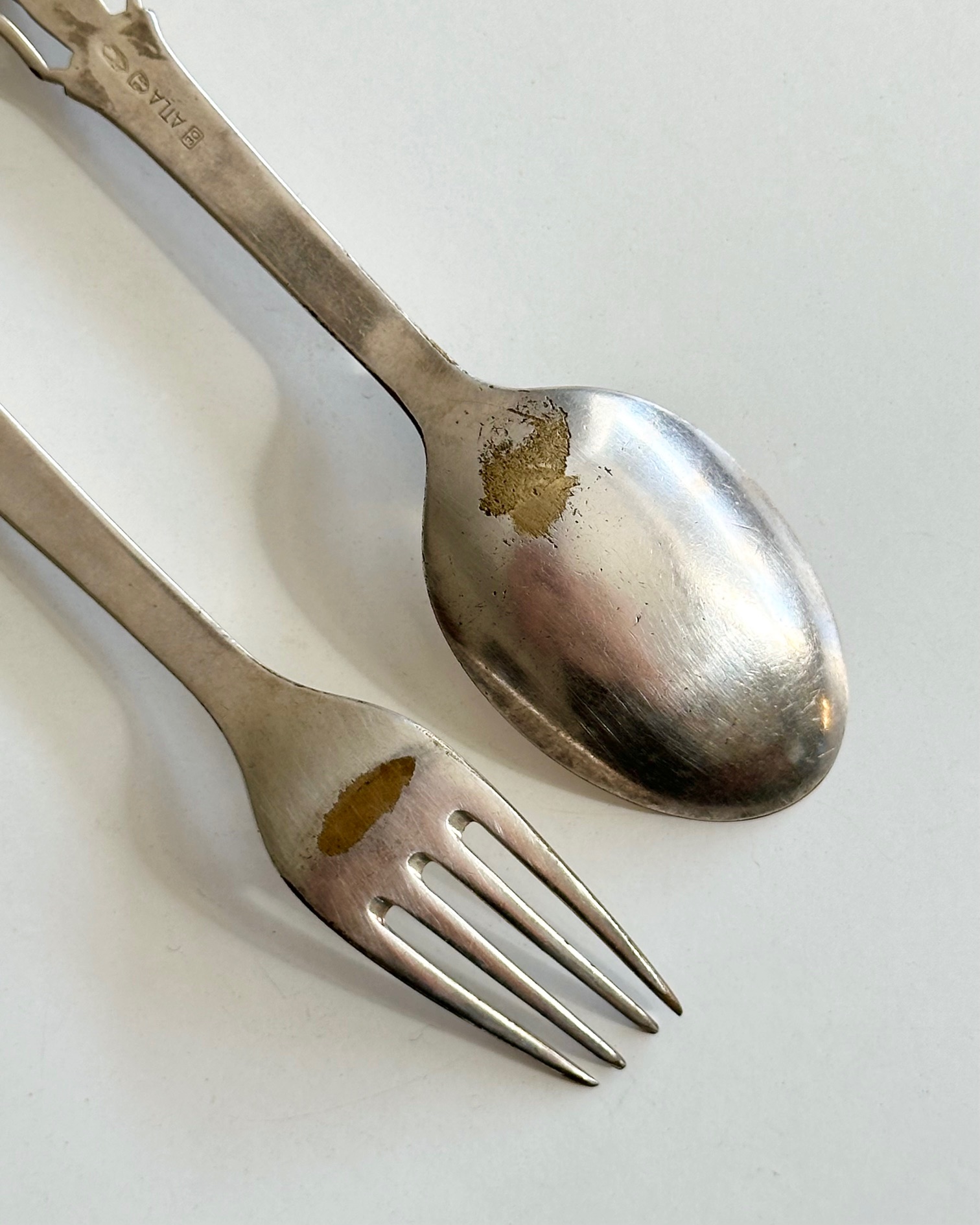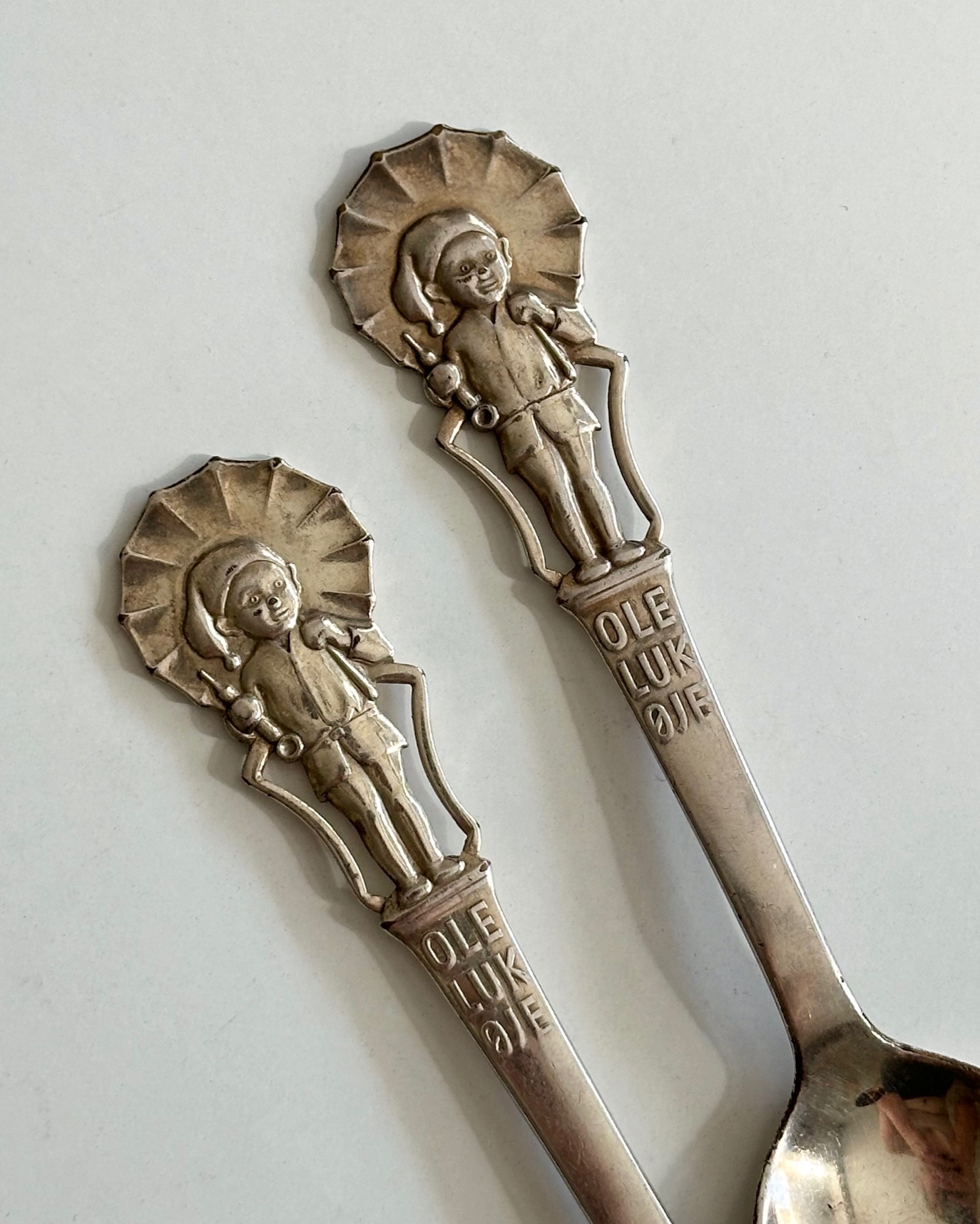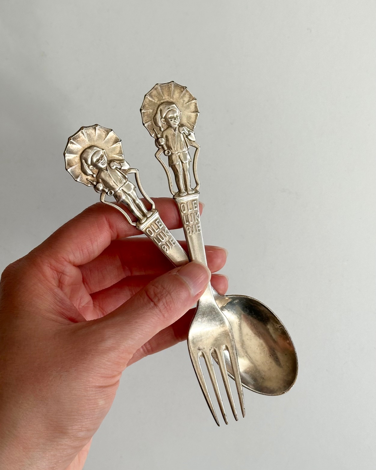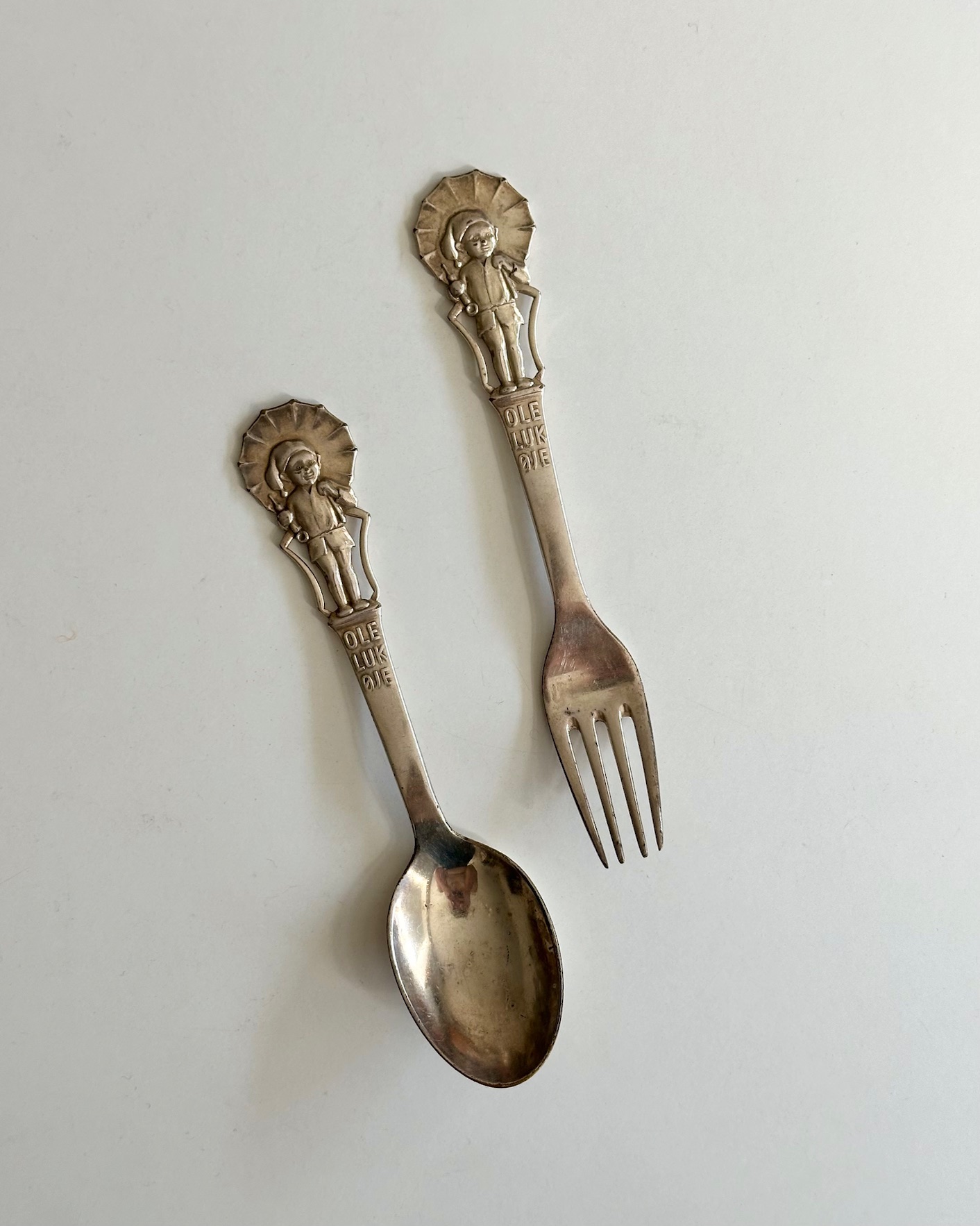 Forsølvet børnesæt af gaffel og ske, med Ole Lukøje