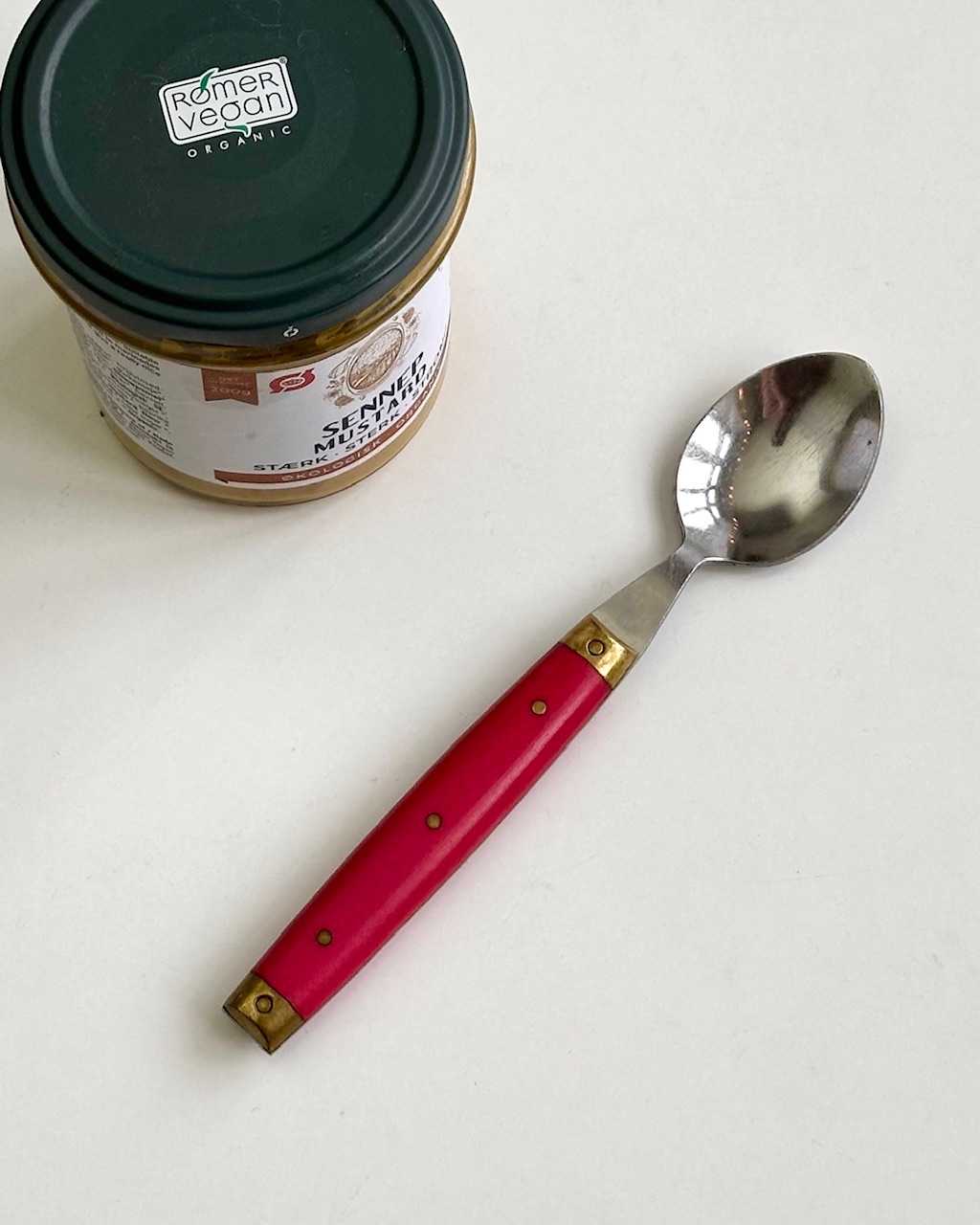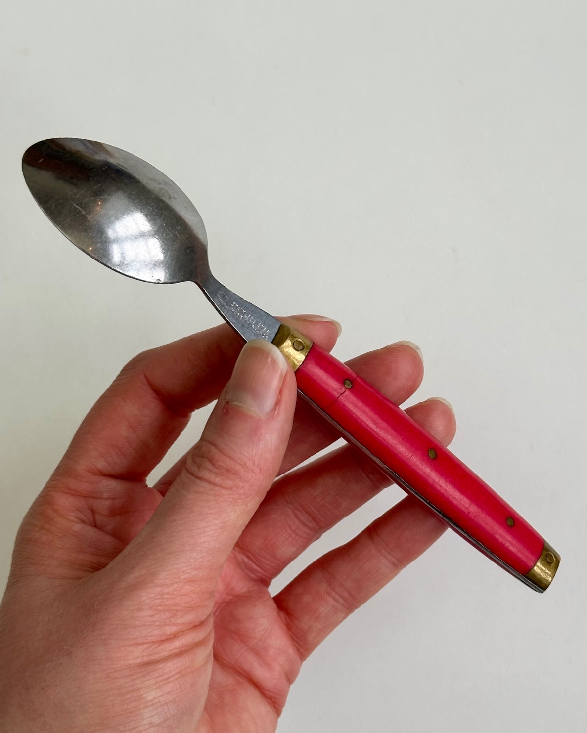 Melron teske med rødt plastikskaft