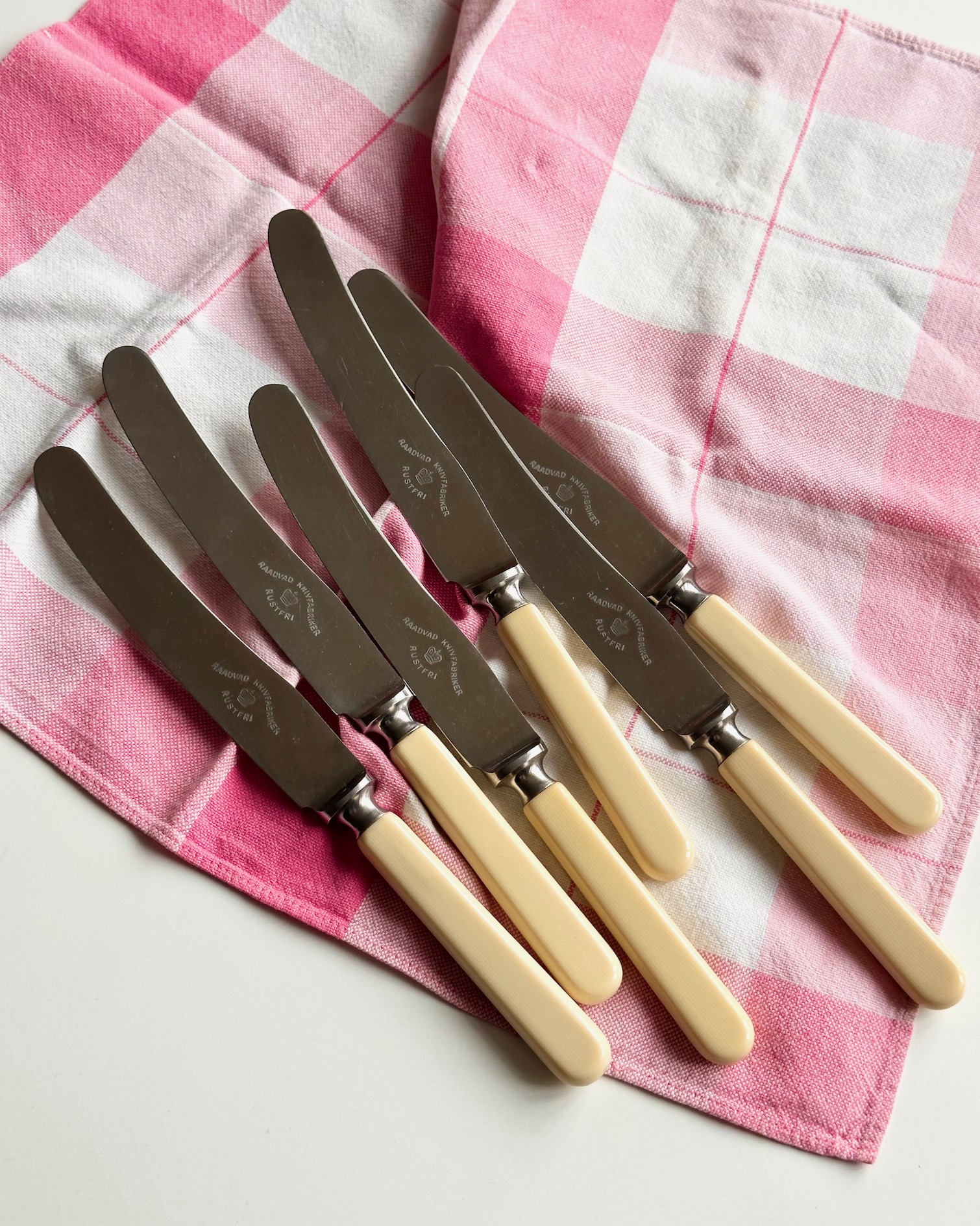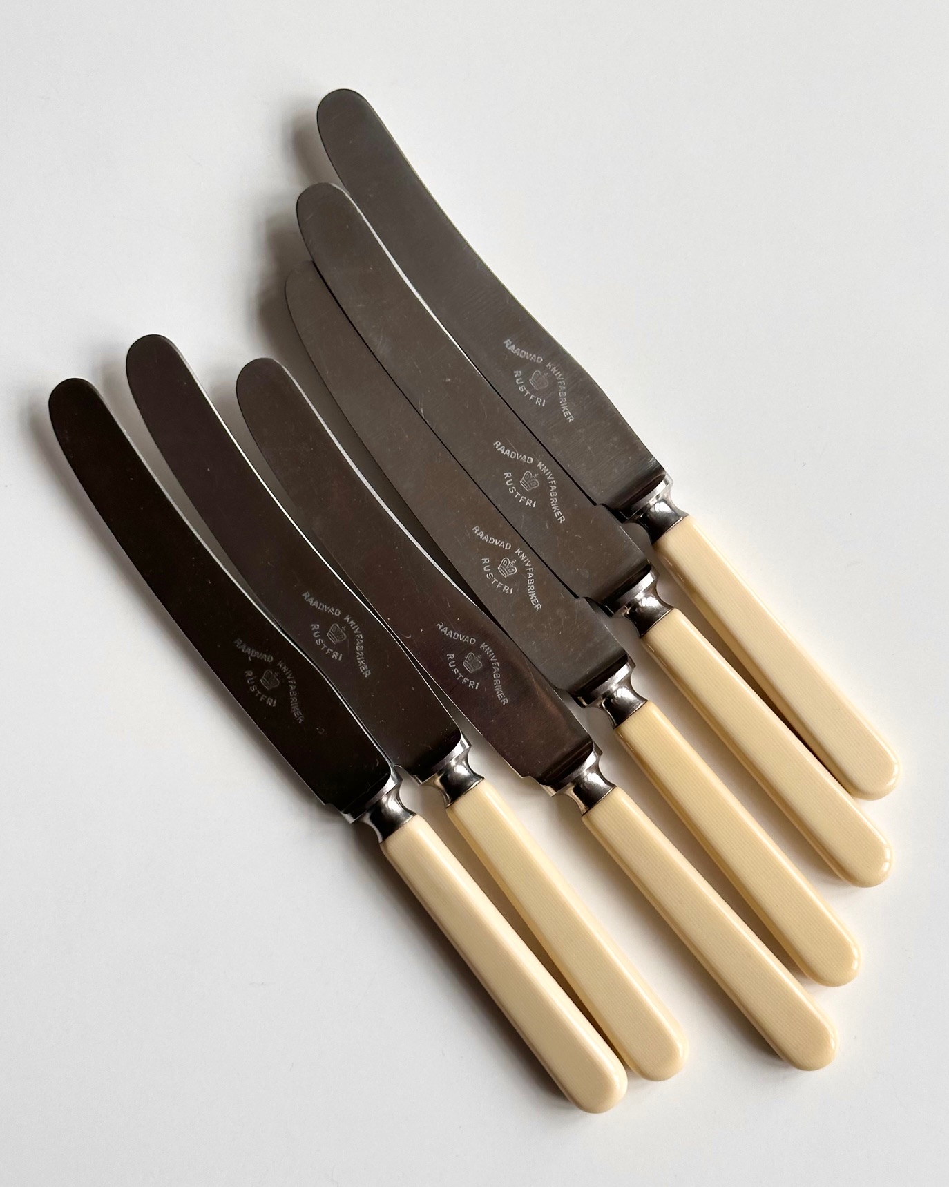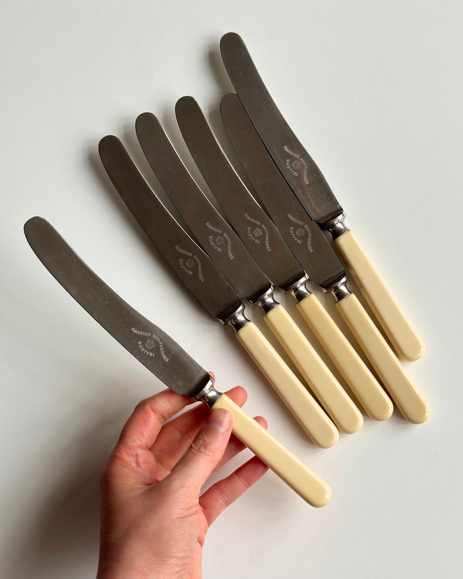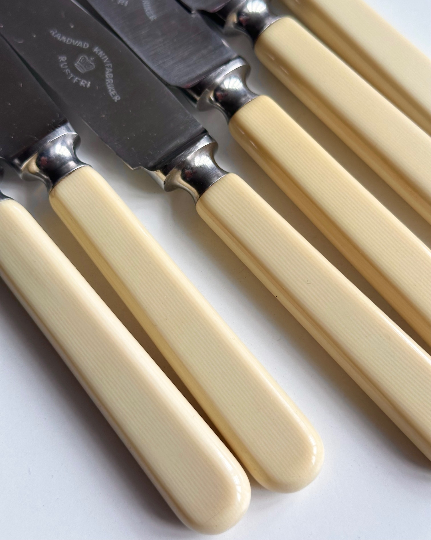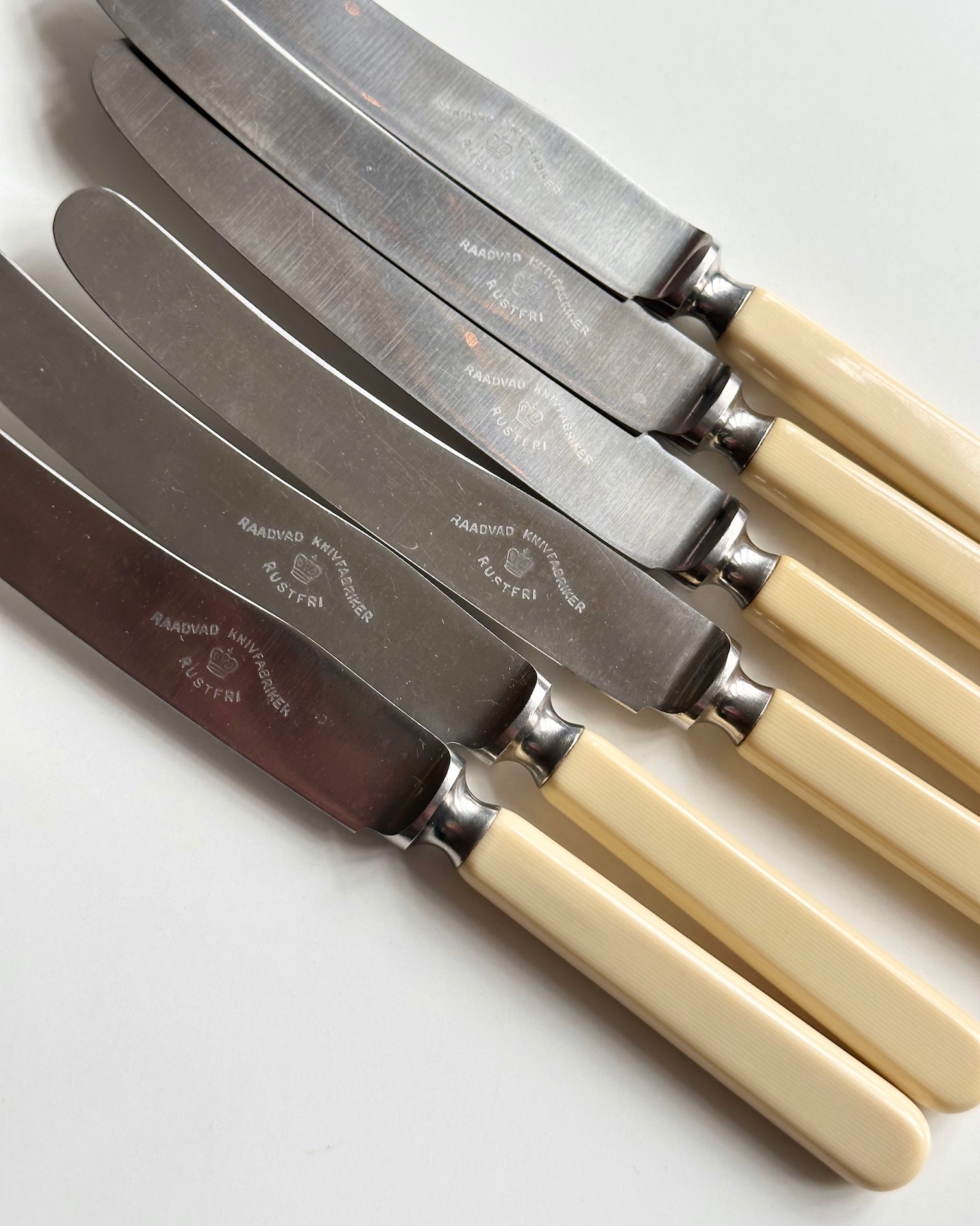 6 skønne, retro bordknive/middagsknive fra danske Raadvad, med plastikskaft
