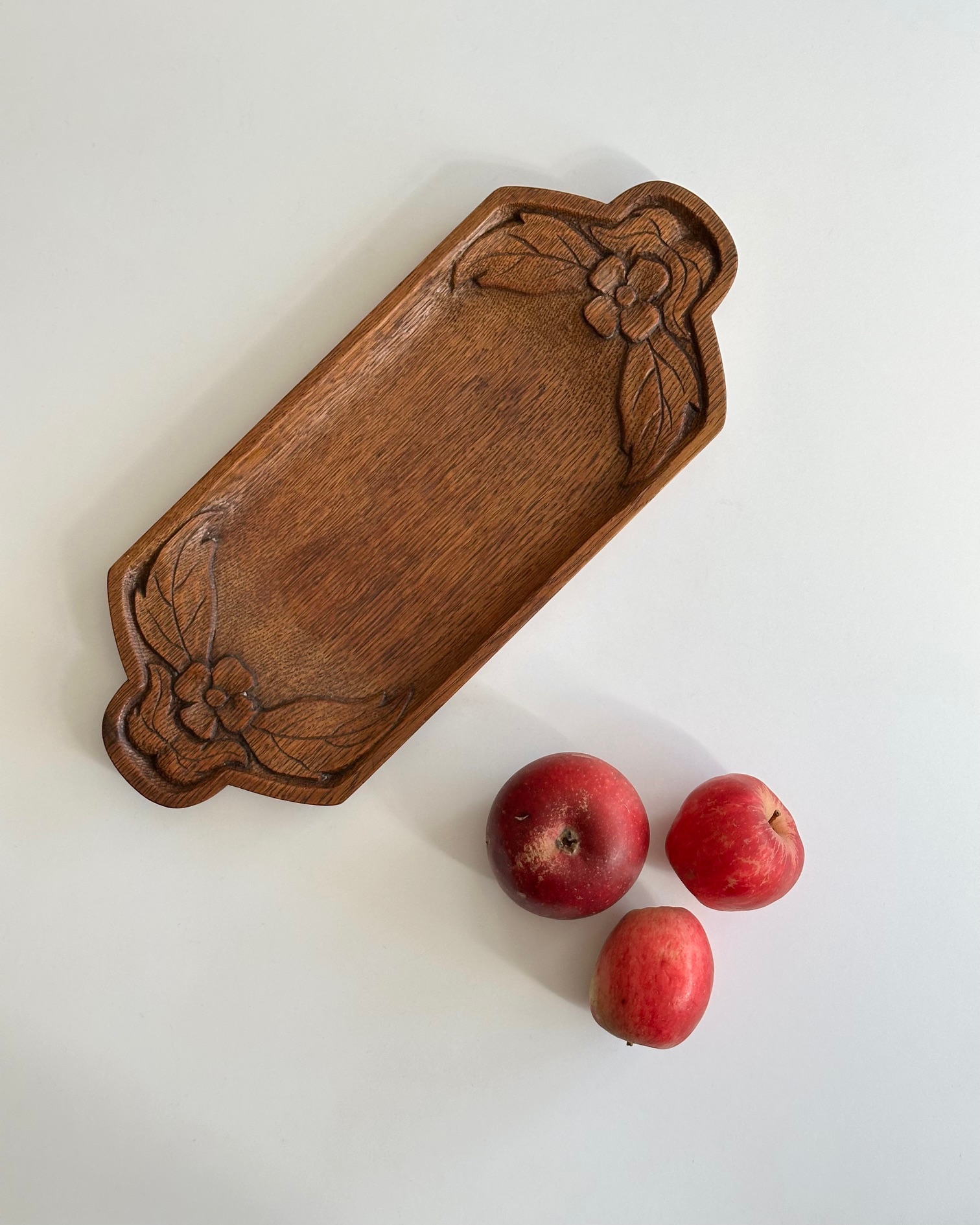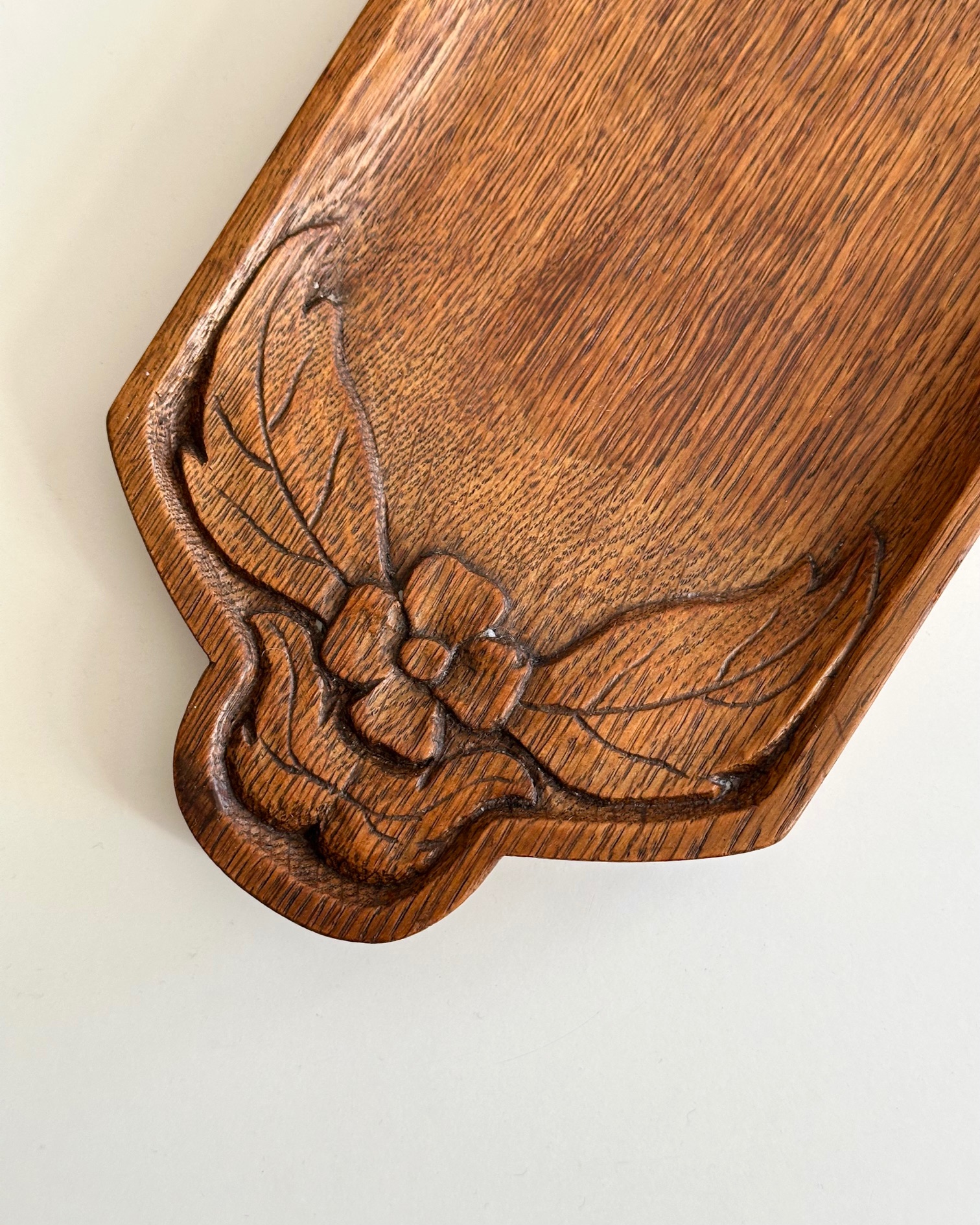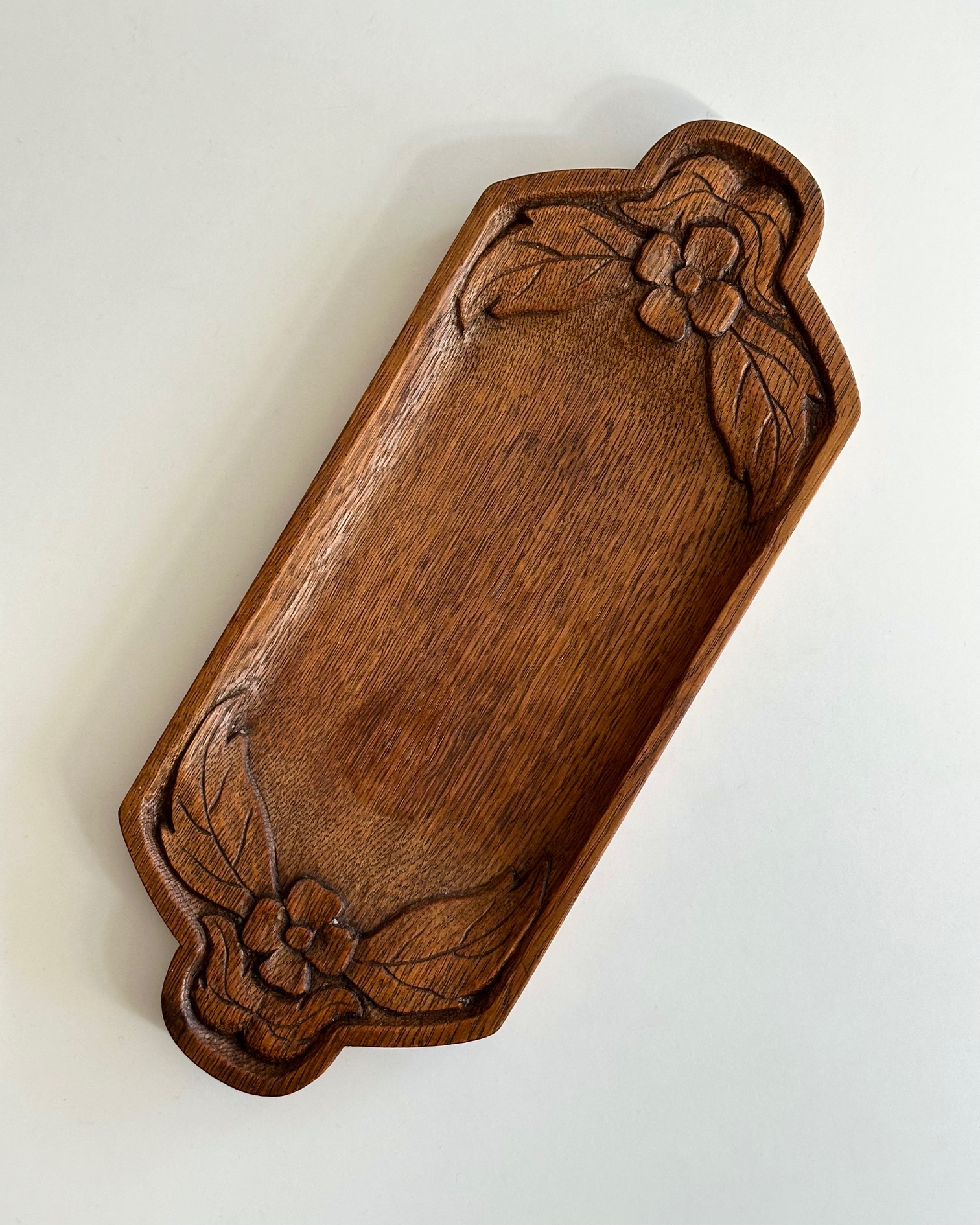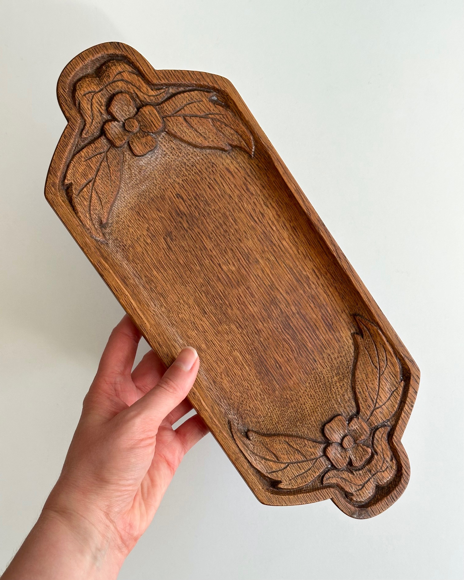 Håndskåret bakke med blomster