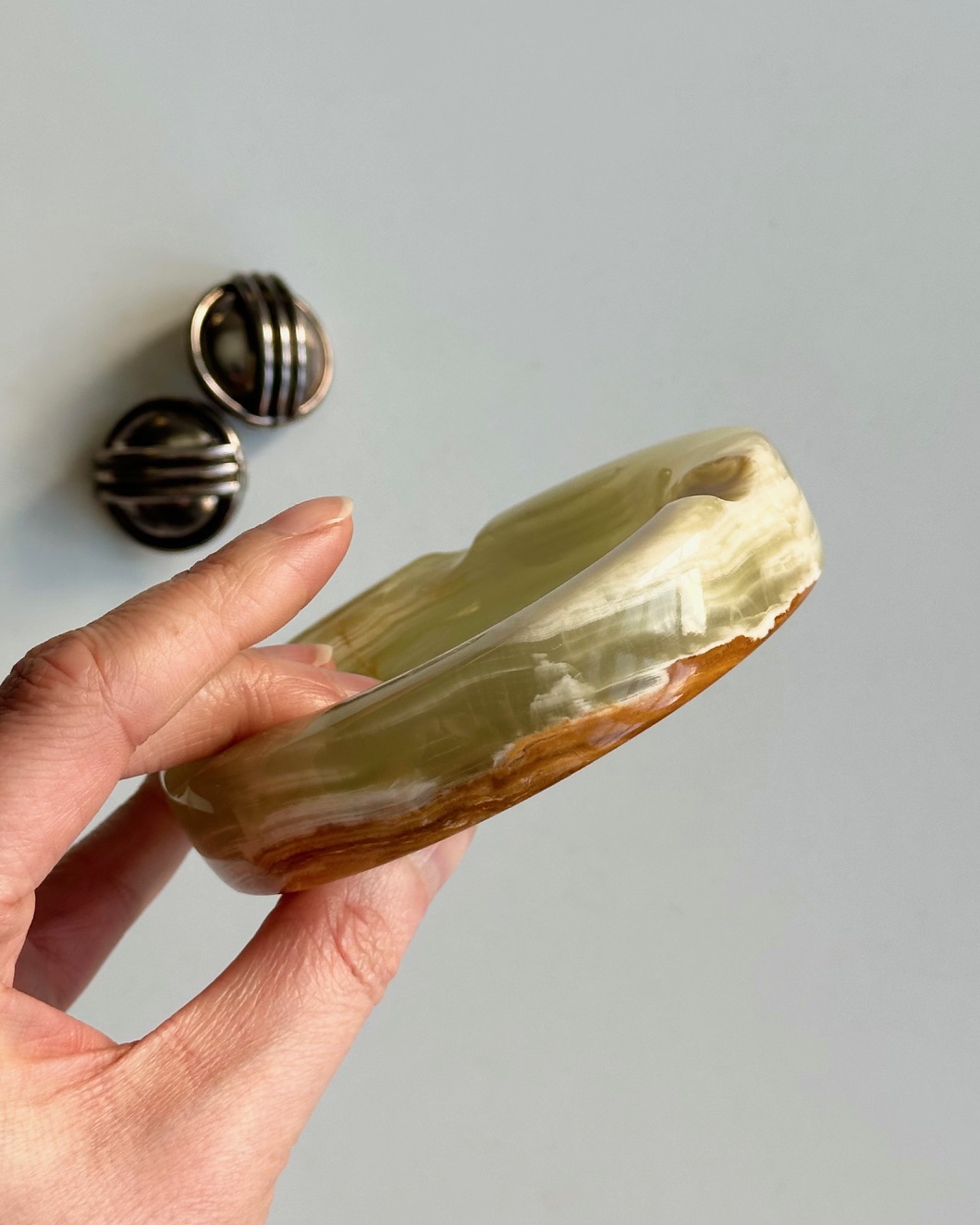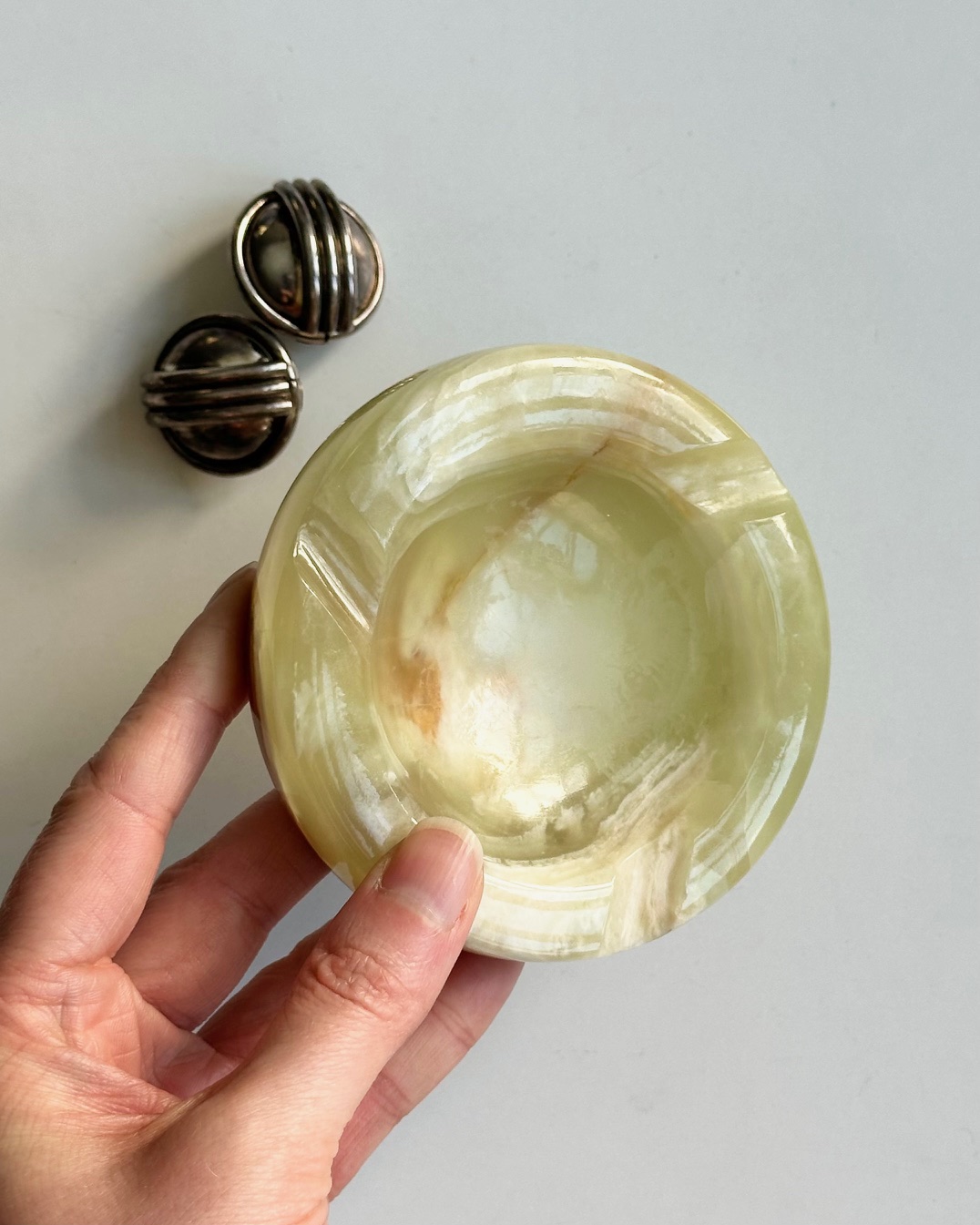 Smuk lille stenskål til smykker, olivensten osv