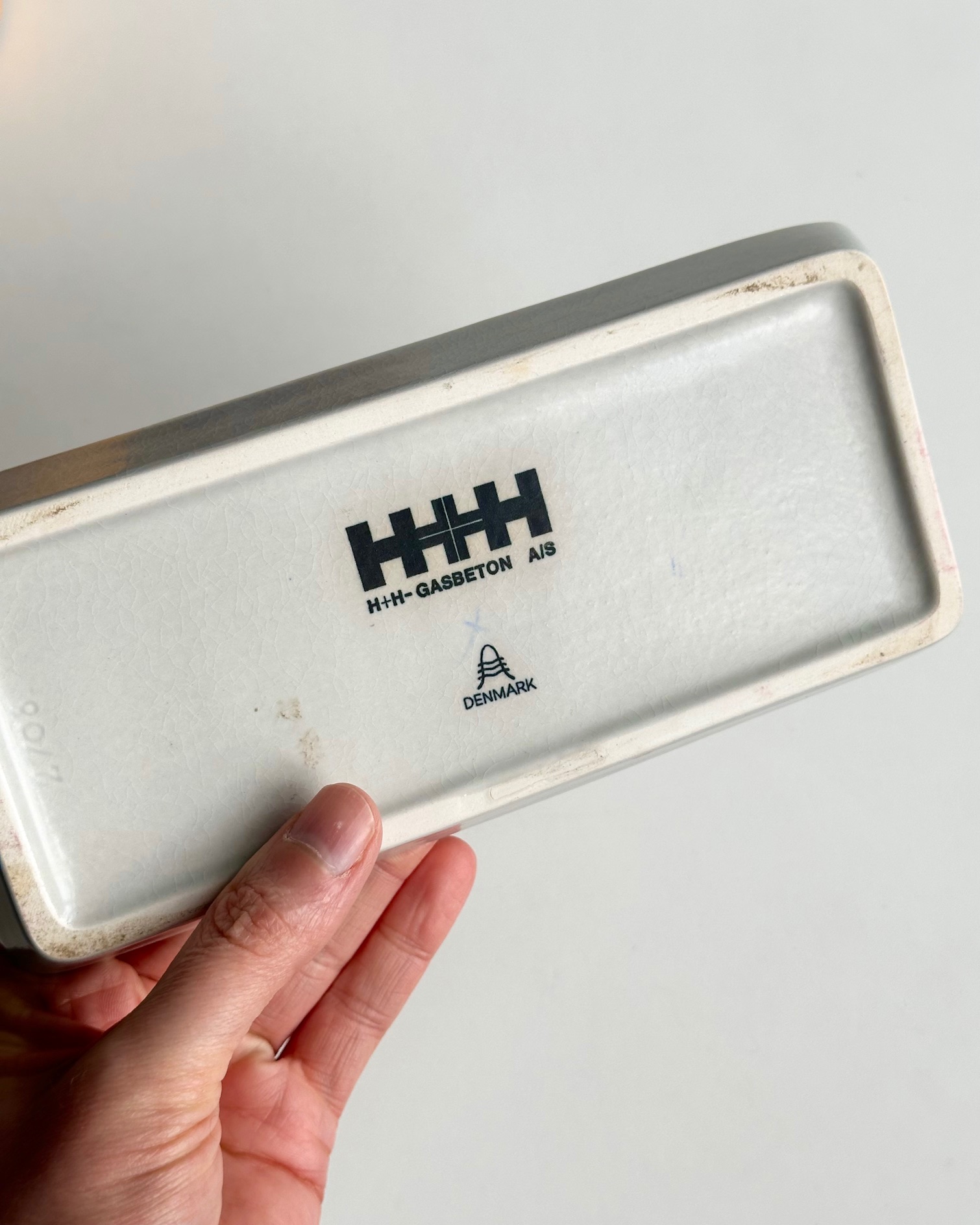 Aluminia bakke nr. 2708, perfekt til fx peberkværnen. Antageligt firmagave for H+H Gasbeton A/S