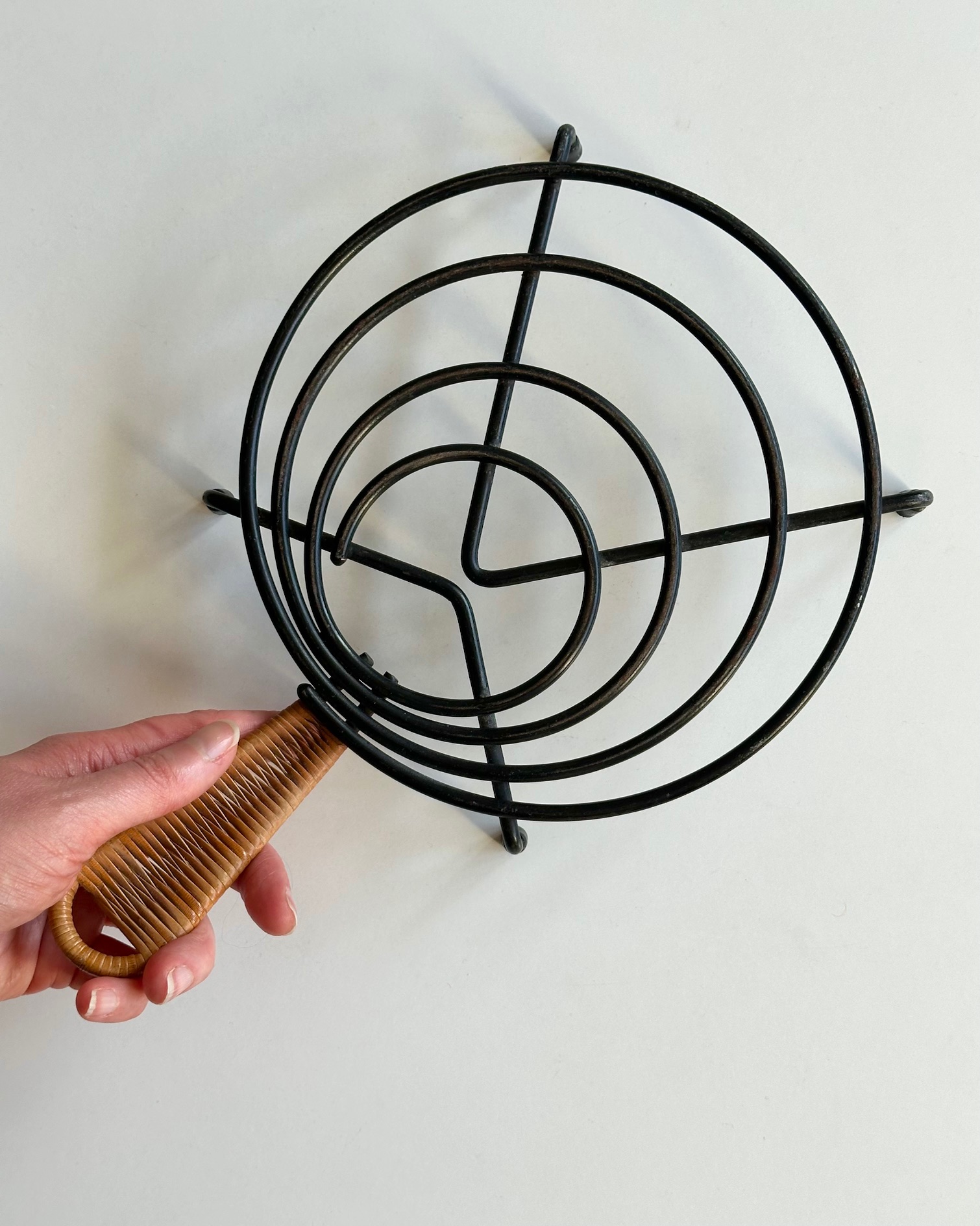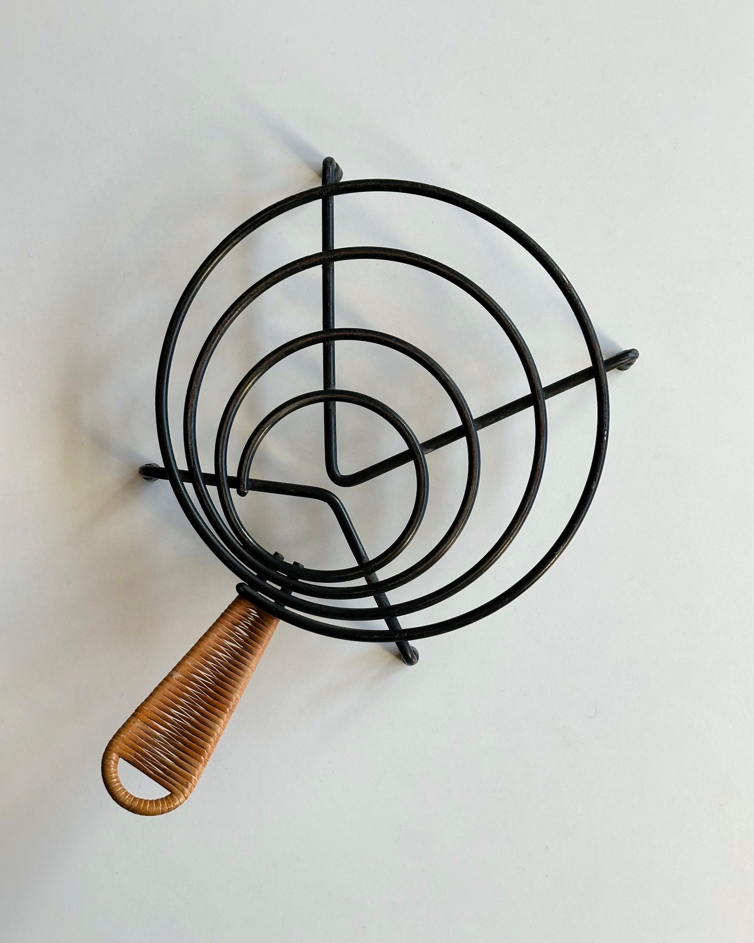 Bordskåner af metal med håndtag af flettet kernelæder, tilskrevet Lauritz Lønborg