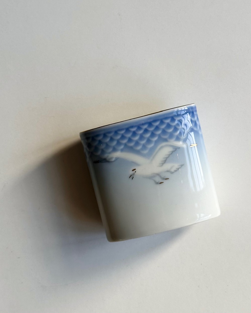 Cigaretbæger, mågestel med guld fra Bing og Grøndahl. Stemplet 1970-83