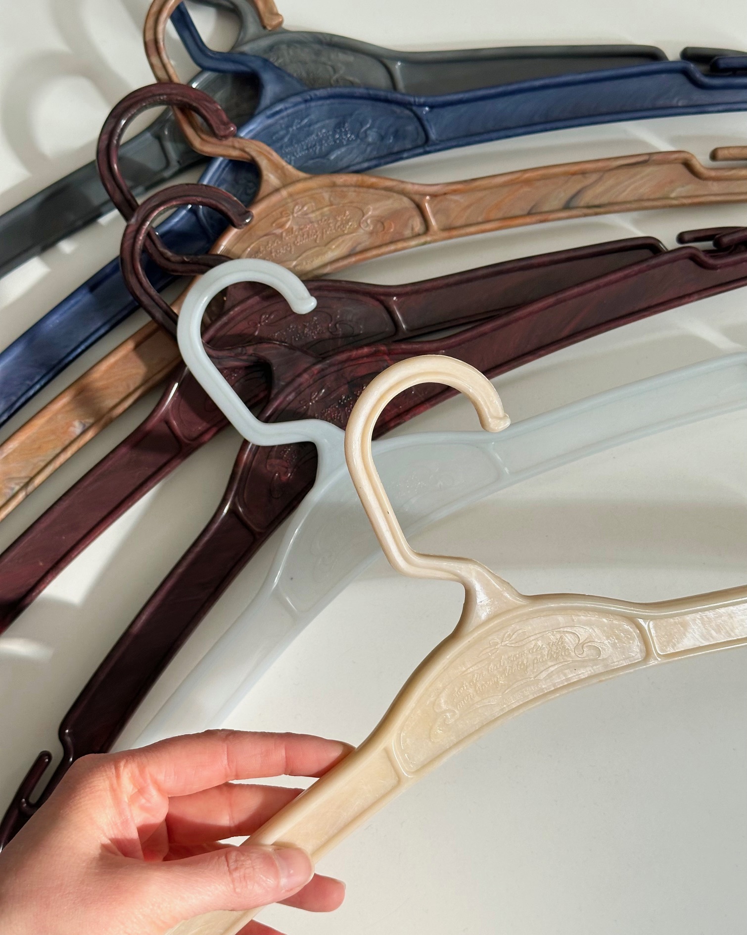Retro plastikbøjler, ass. farver, 7 stk samlet